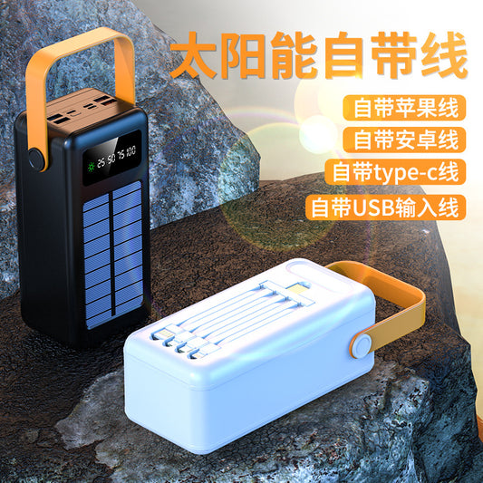 Cross-border large-capacity 5W100000 mAh self-contained cable, power bank, outdoor camping, solar mobile power customization