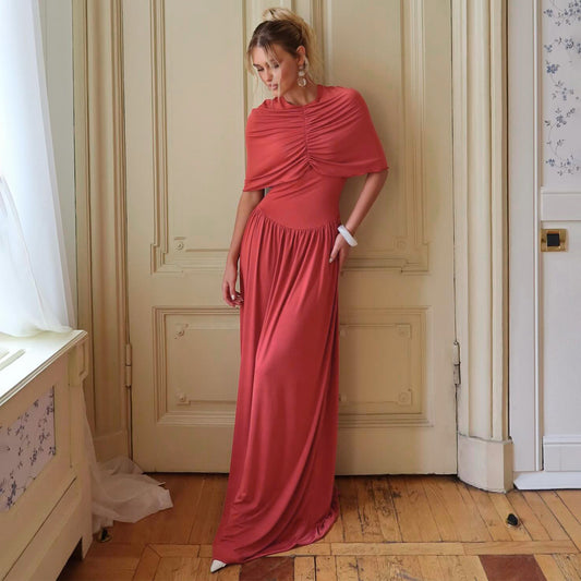 D112DS European and American cross-border 2025 spring explosion new women's dress two-piece set off-the-shoulder cape sexy slim fit