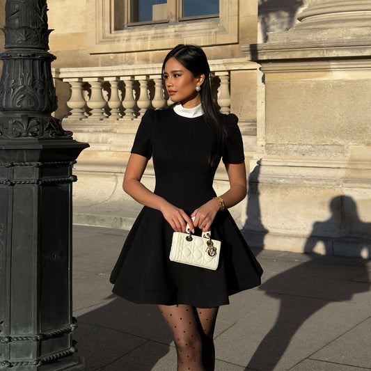 D115DS European and American cross-border 2025 Korean contrasting colors lady temperament design sense Polo collar dress slim and thin