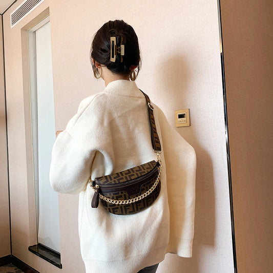 A new fashion printed simple retro breast bag shoulder bag Korean version messenger women's bag