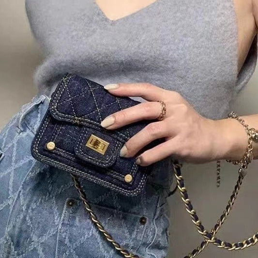 A new casual washed denim mini earphone bag chain decorative messenger bag lipstick bag female tide