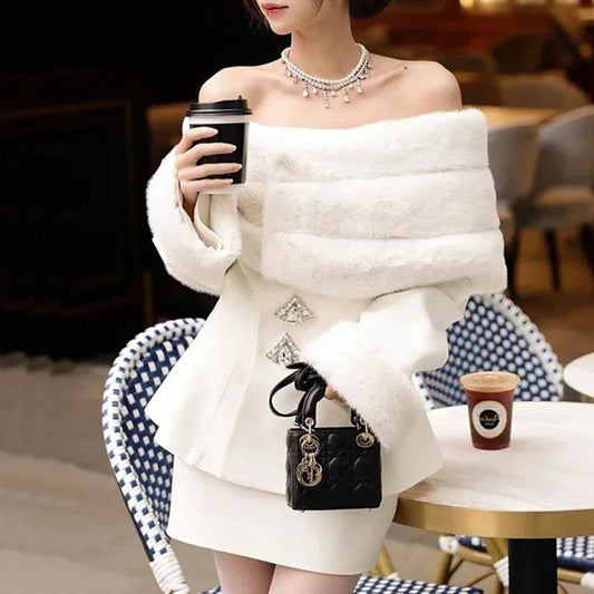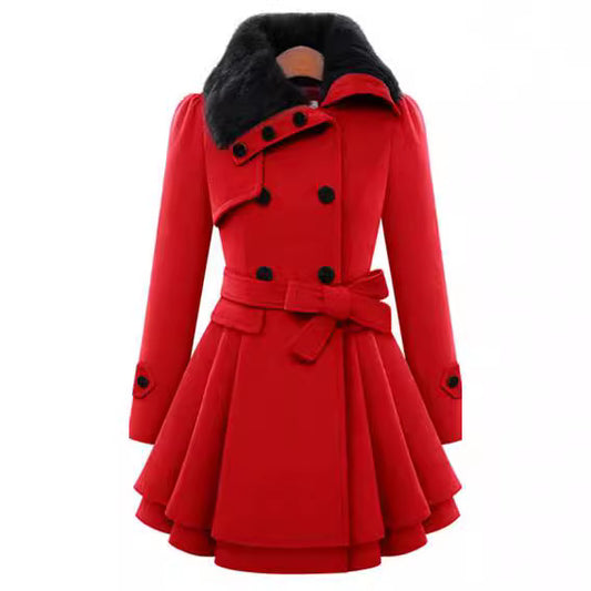 P fur collar long sleeve jacket