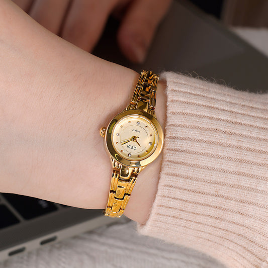 A Ladies Quartz Watch Female Retro Mini Disc Small Luxury Steel Belt