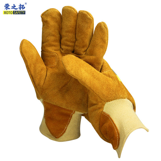 A Fire Gloves Fire Rescue Aramid Flame Retardant Heat Insulation Gloves Cowhide Thickened Warm Durable Scratch Resistant Stab-proof Gloves
