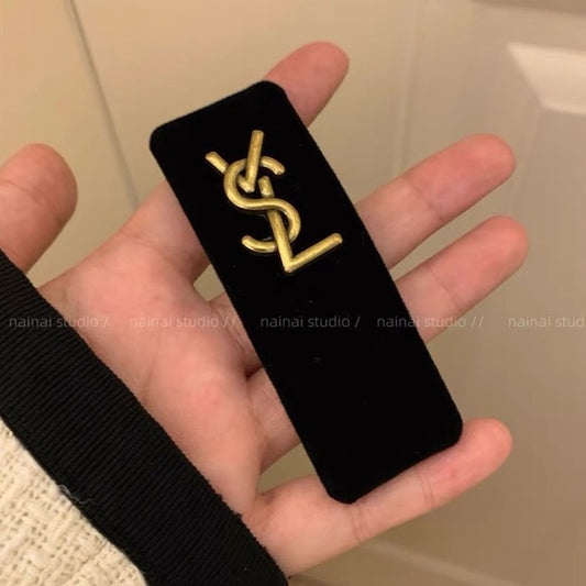 A old letter hairpin~ black velvet hair accessories retro French small fragrant wind grab clip shark clip bow headdress