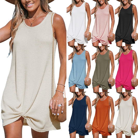 European and American cross-border Amazon 2025 new women's crew neck sleeveless waffle knitted vest beachwear dress