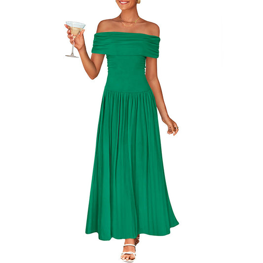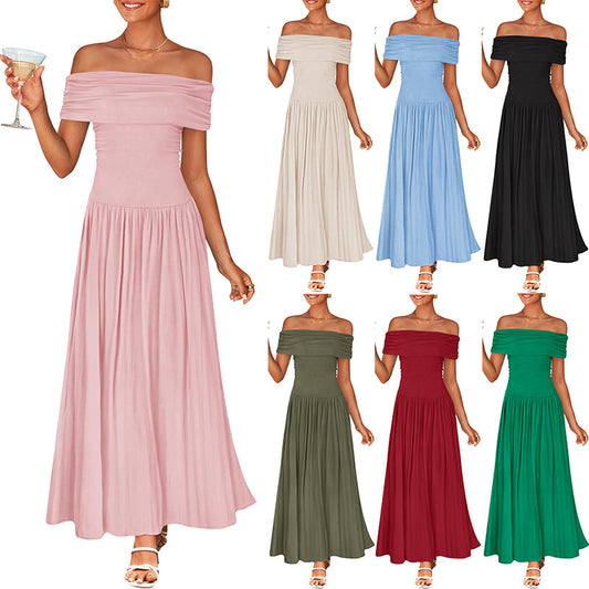 European and American cross-border TK2025 summer new product French one-word shoulder French shoulder-slipping pocket sleeveless tube top dress long dress