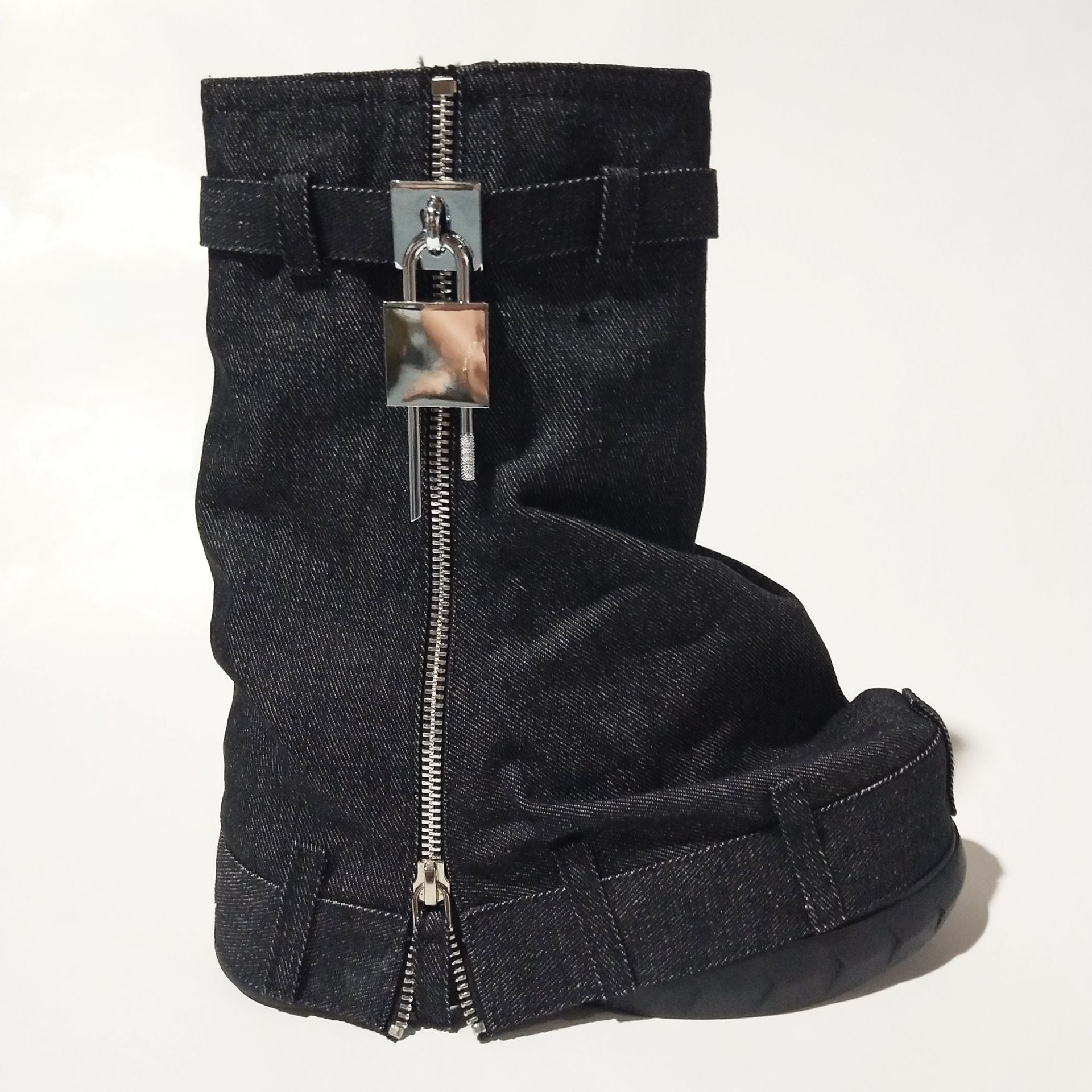 A foreign trade new denim platform shark buckle lock trouser skirt round head women's boots large size short wedge heel women's shoes