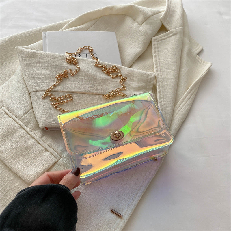 A new laser colorful small square bag chain small bag mobile phone bag change bag transparent bag shoulder messenger bag