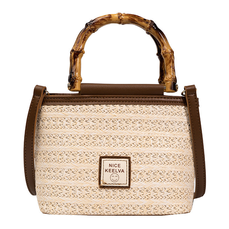 A summer new textured bamboo handle woven bag Thailand travel vacation fashion messenger straw bag