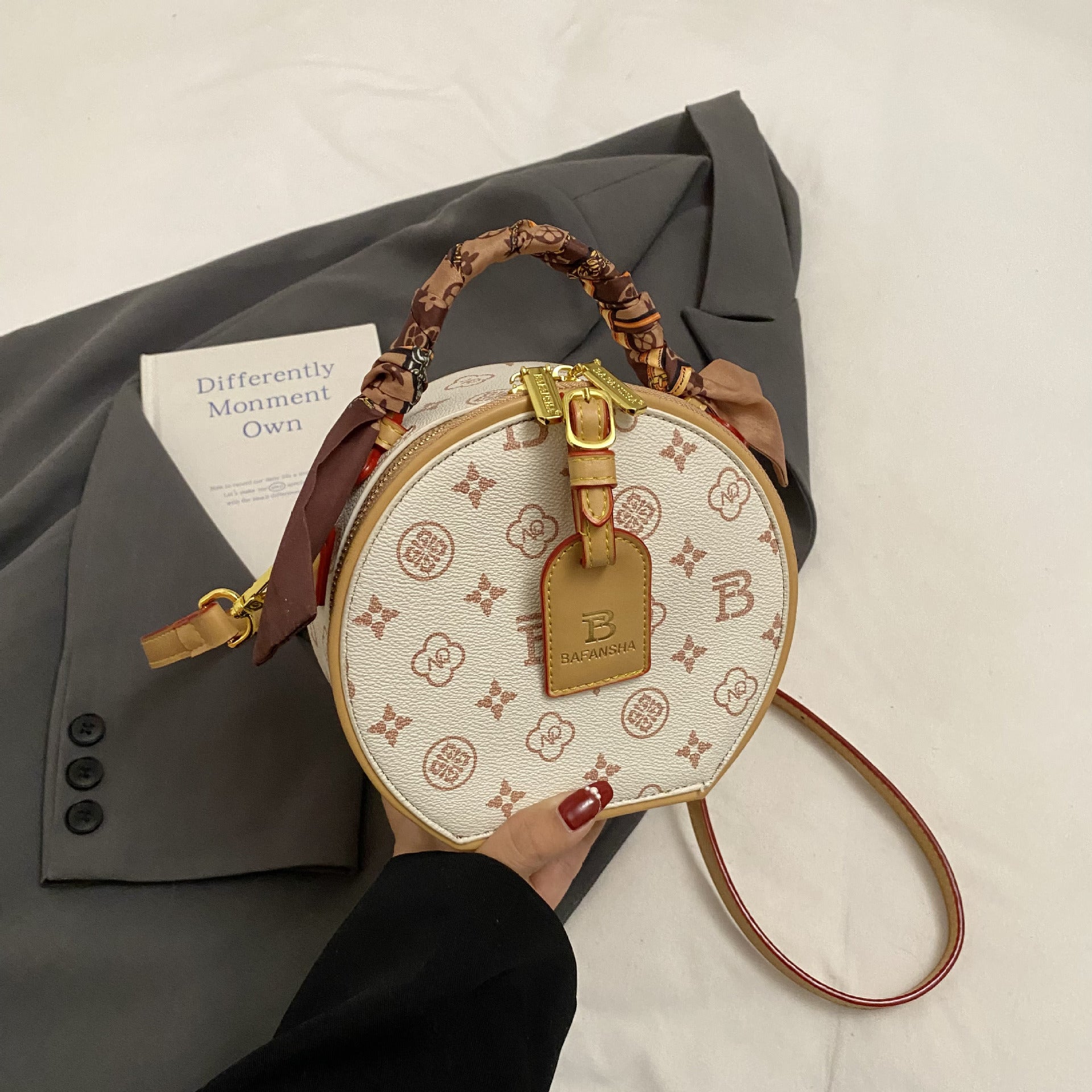 A new high-end printed apple bag niche light luxury fashion versatile shoulder messenger bag portable round cake bag
