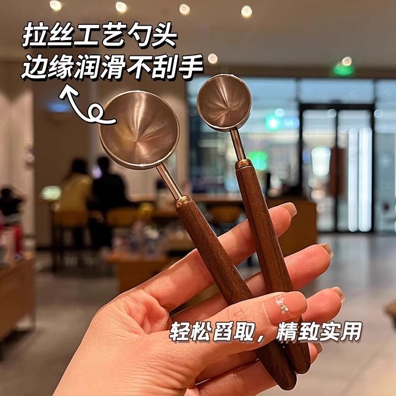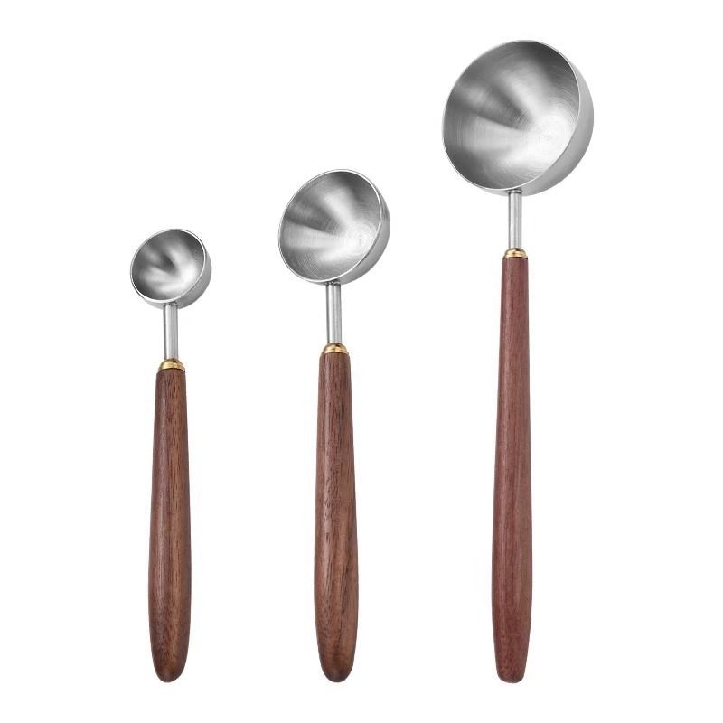 P 304 stainless steel walnut long handle coffee bean flour spoon