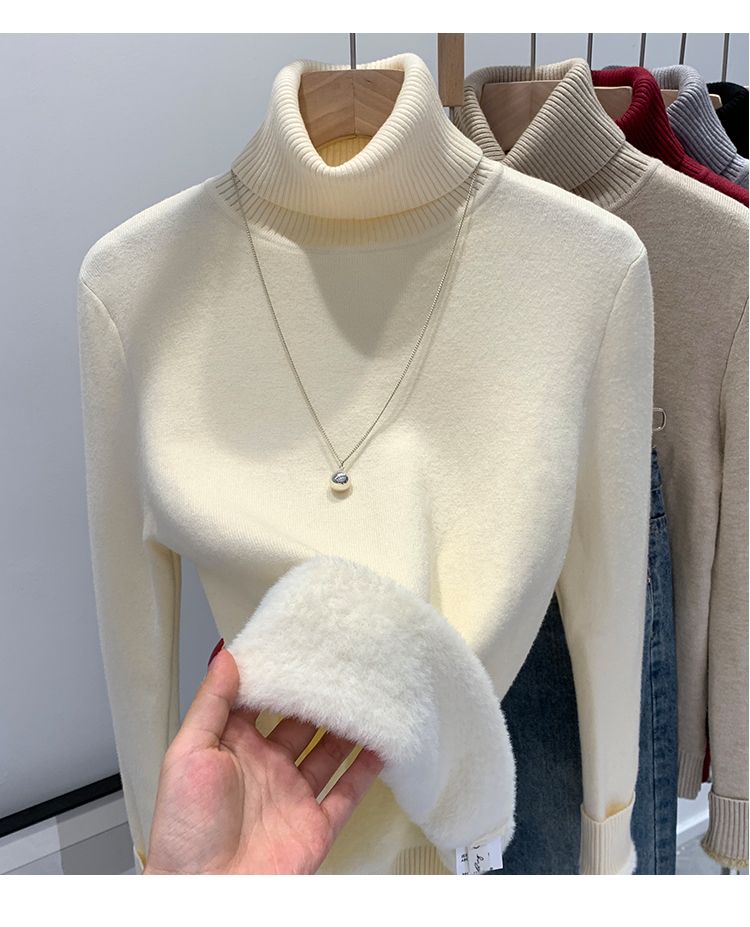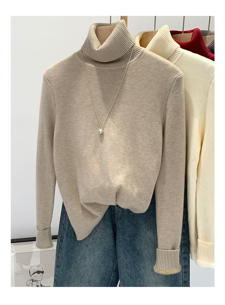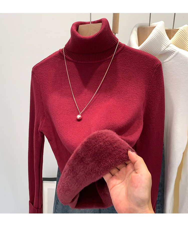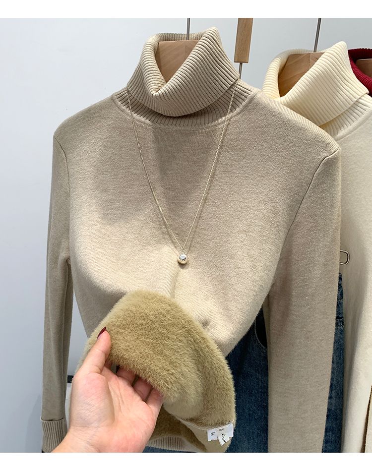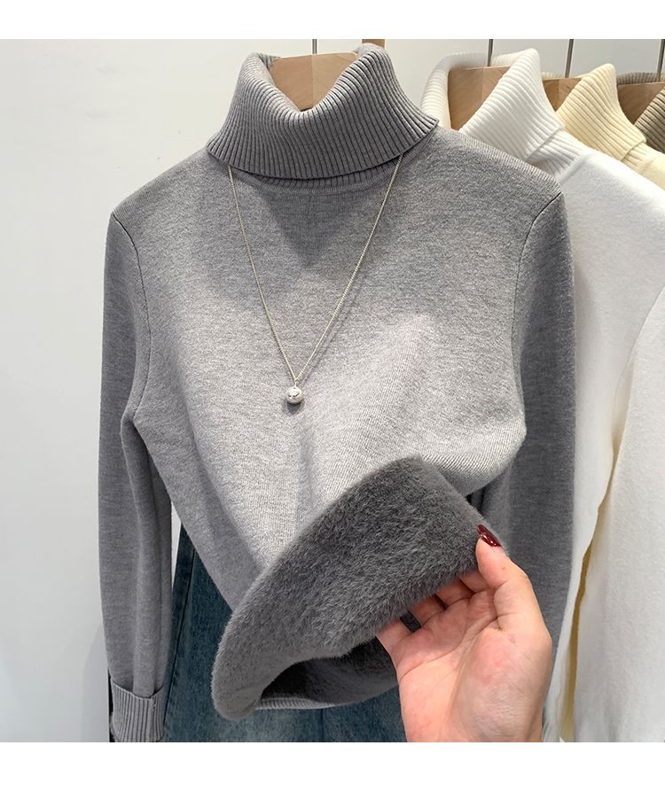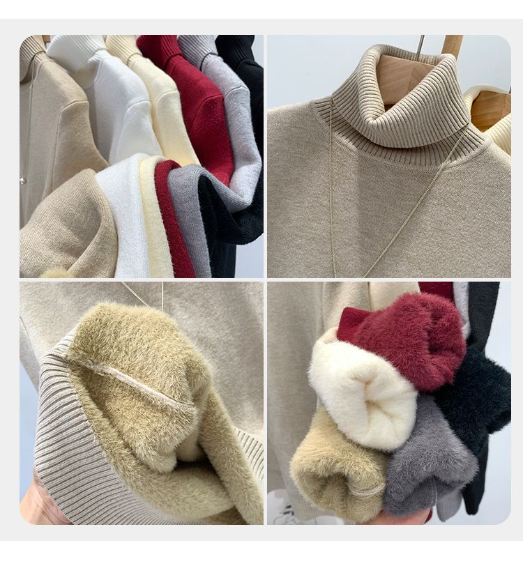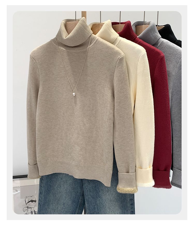 P turtleneck sweater piled and thickened