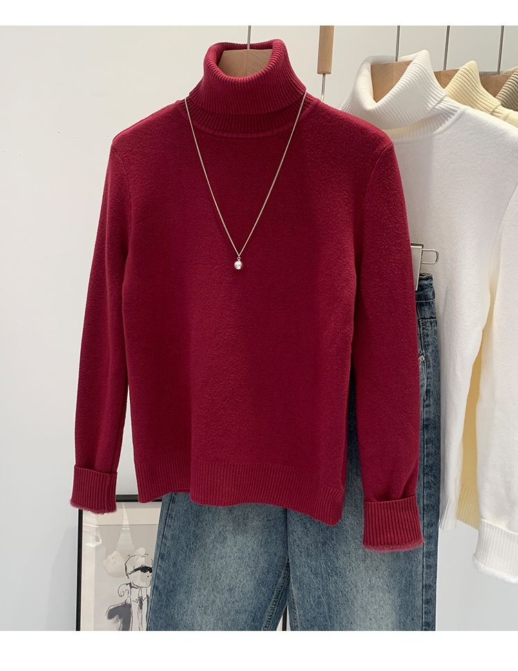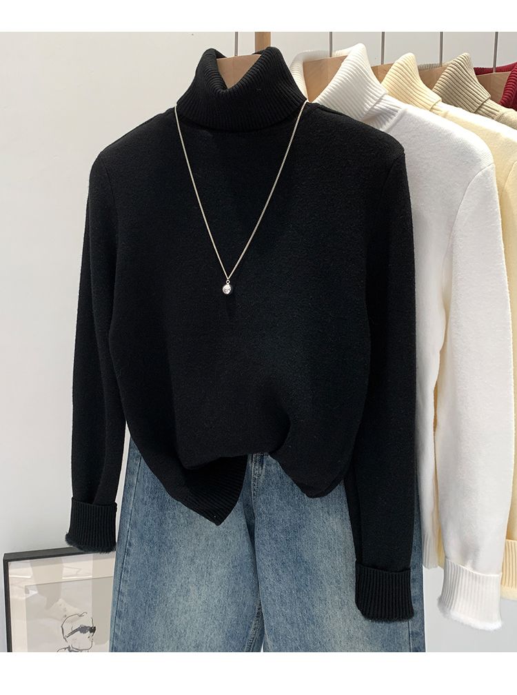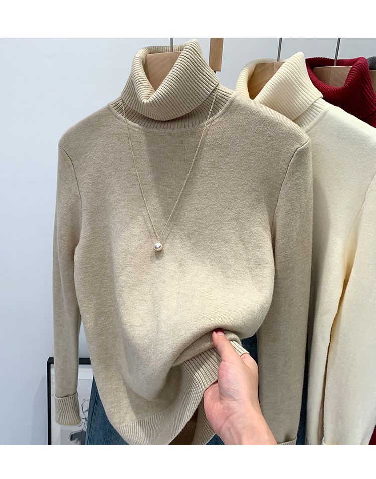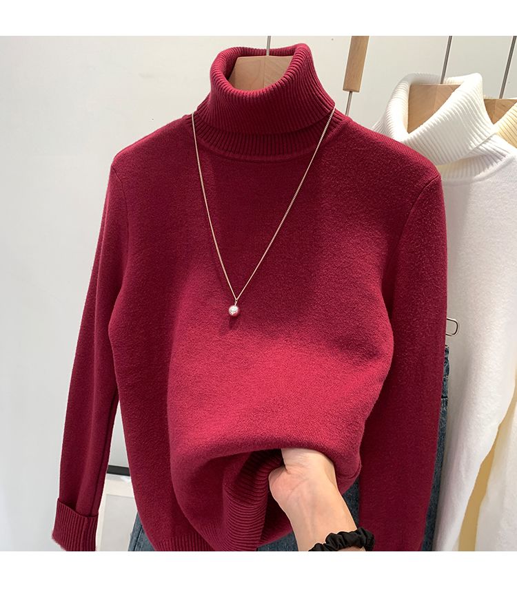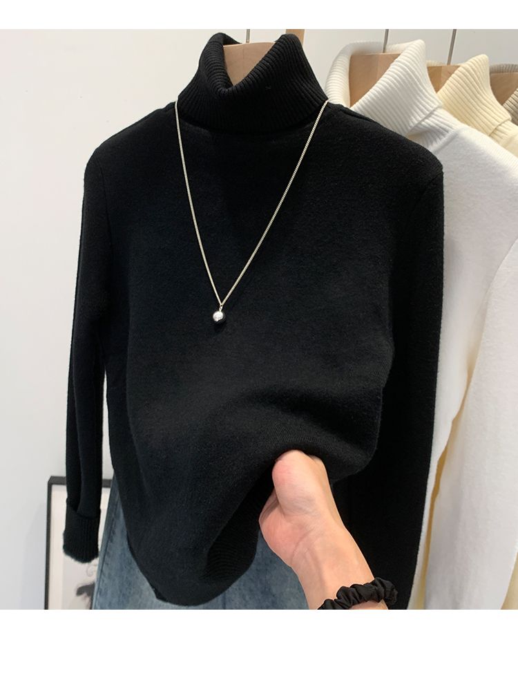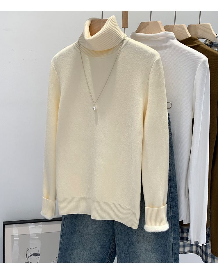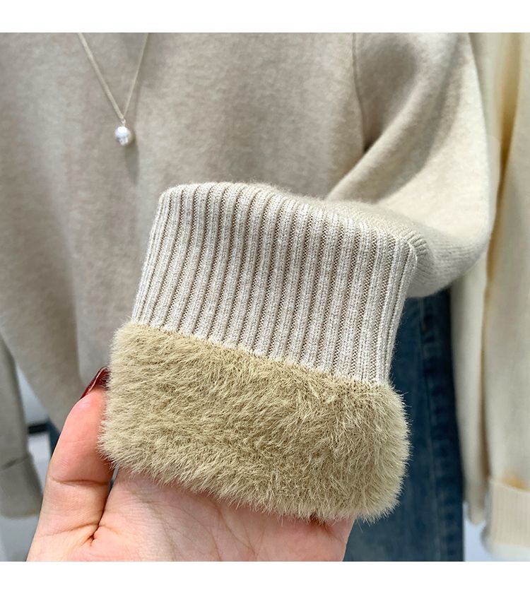 P turtleneck sweater piled and thickened