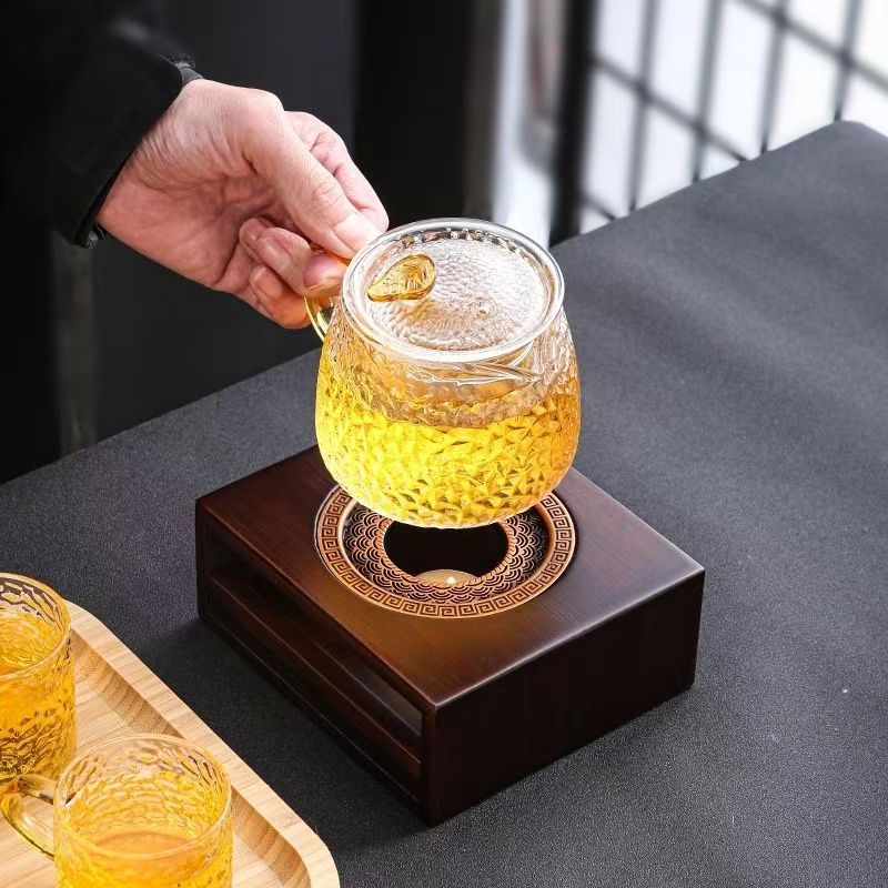 P The base of the tea stove is heated and kept warm