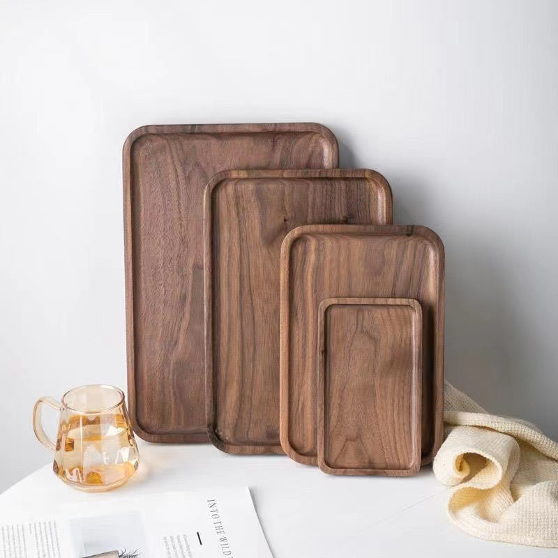 A Black walnut tray Rectangle Japanese-style household water cup Solid wood tray Original wooden tea tray Dining tray Wooden plate