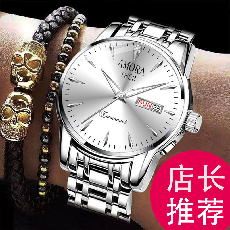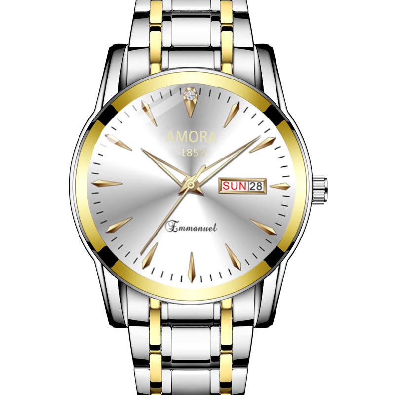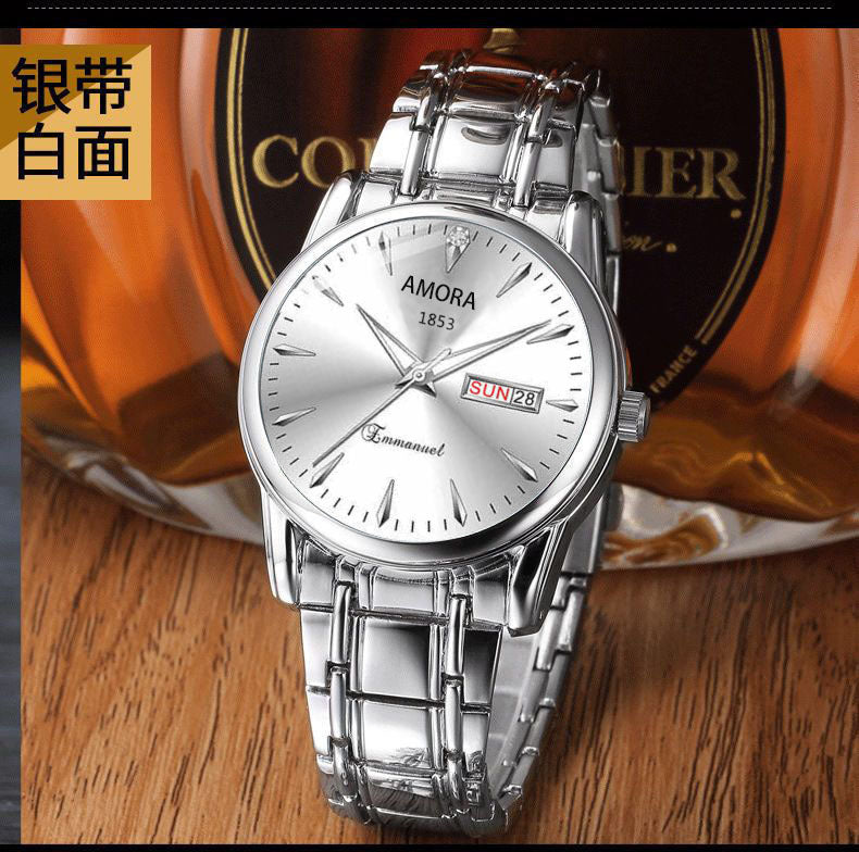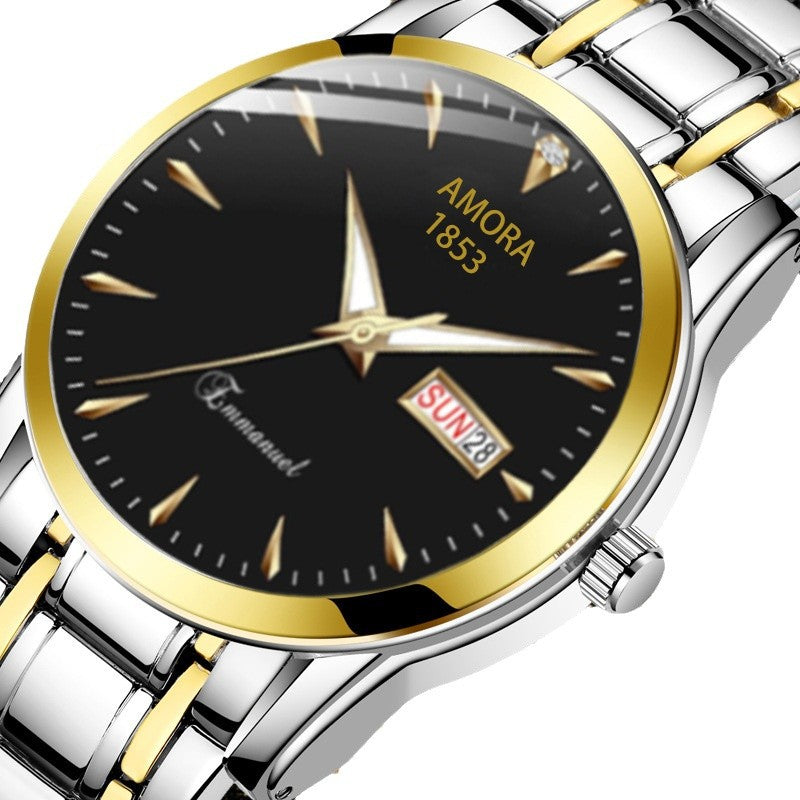 A business waterproof automatic quartz watch luminous double calendar movement men's Korean version fashion watch wholesale delivery