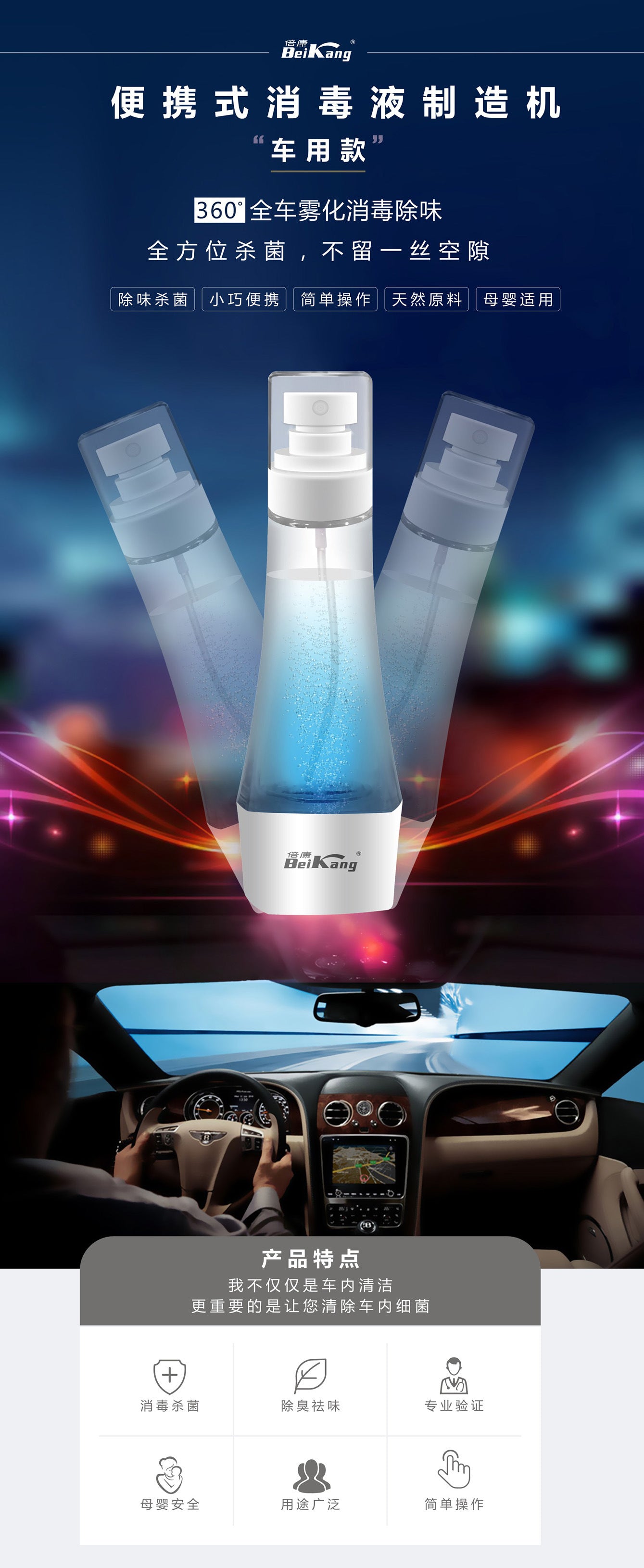 A Car natural sterilization, disinfection and deodorization water homemade generator with hypochlorous acid spray generator