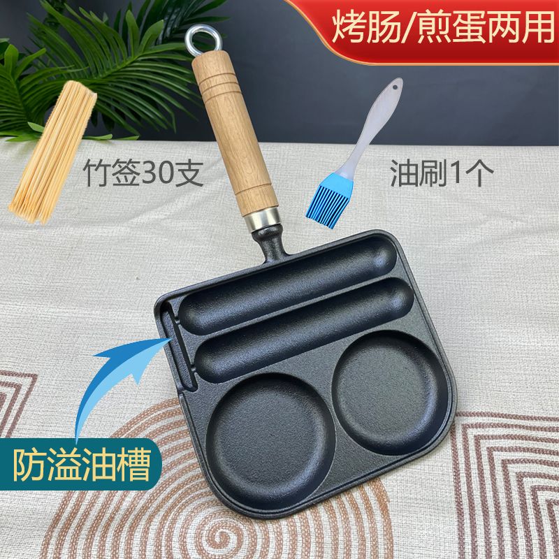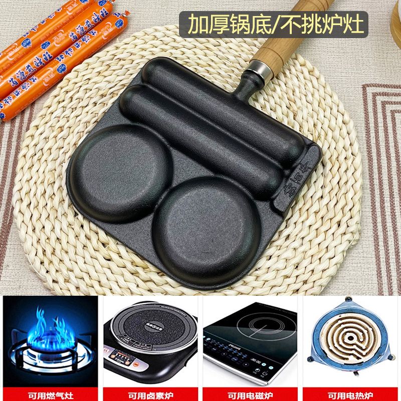 Olla para salchichas de hierro fundido, 2 en 1, freidora de huevos, sin revestimiento, máquina para hacer salchichas para el hogar, máquina para asar salchichas, molde para freír huevos para el desayuno
