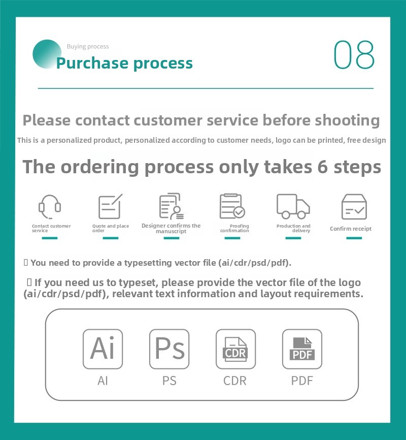 - All products are based on the photos and links provided by the customer. We only act as an agent to purchase goods from China on behalf of the customer.
