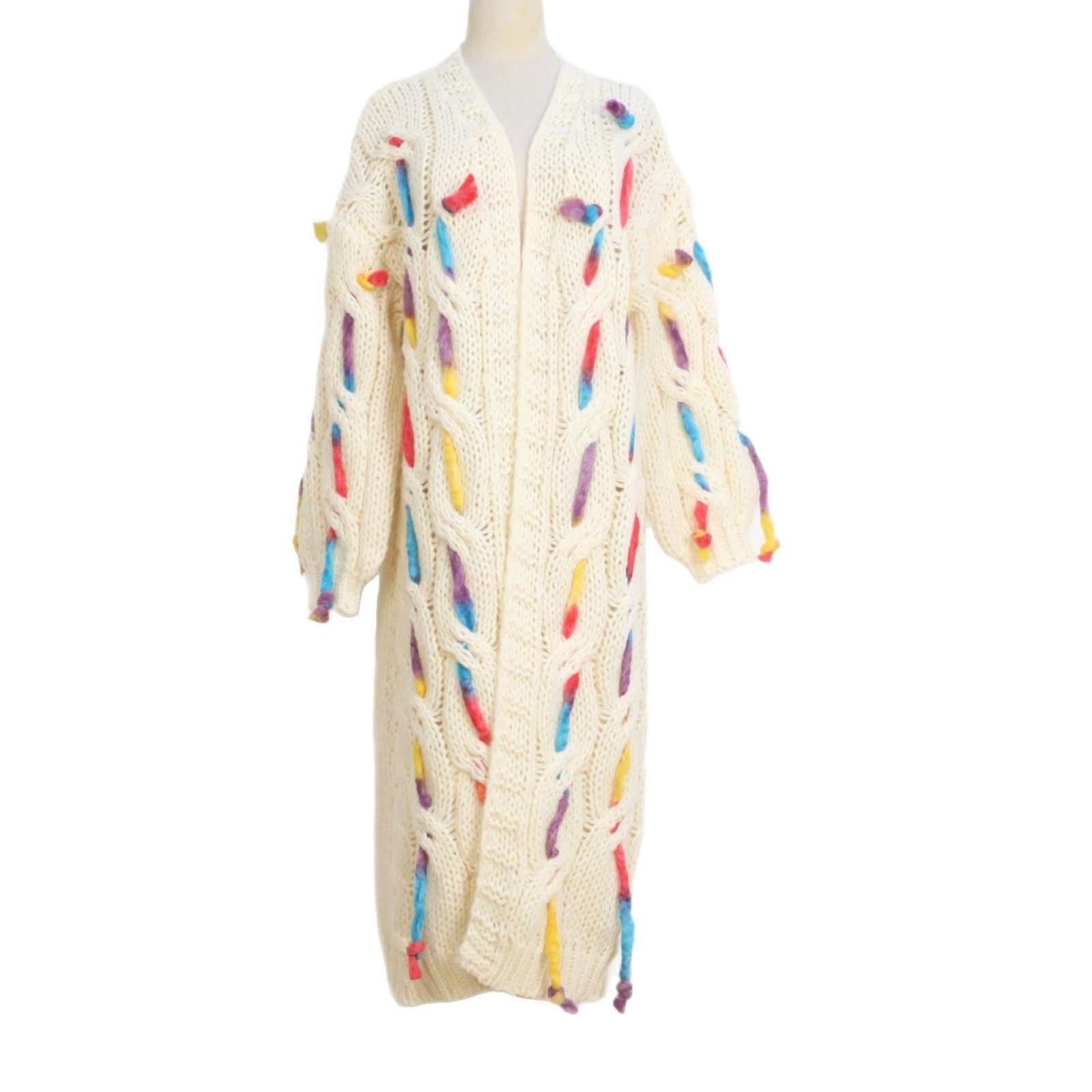 A Cross-border European and American sweaters, women's colored hand hooks, loose foreign style, autumn and winter new stick-needle sweaters, cardigans, long skirts, coats