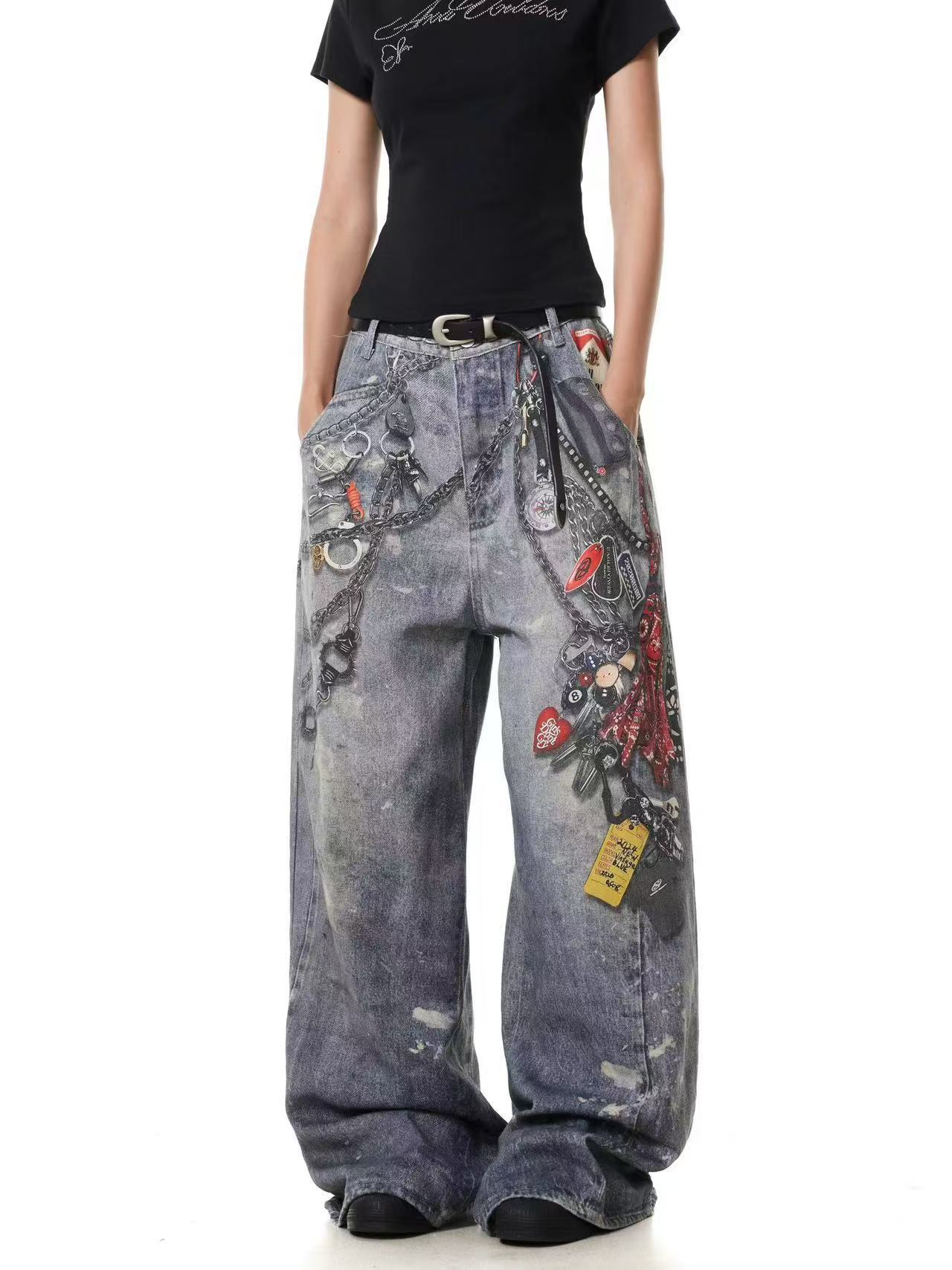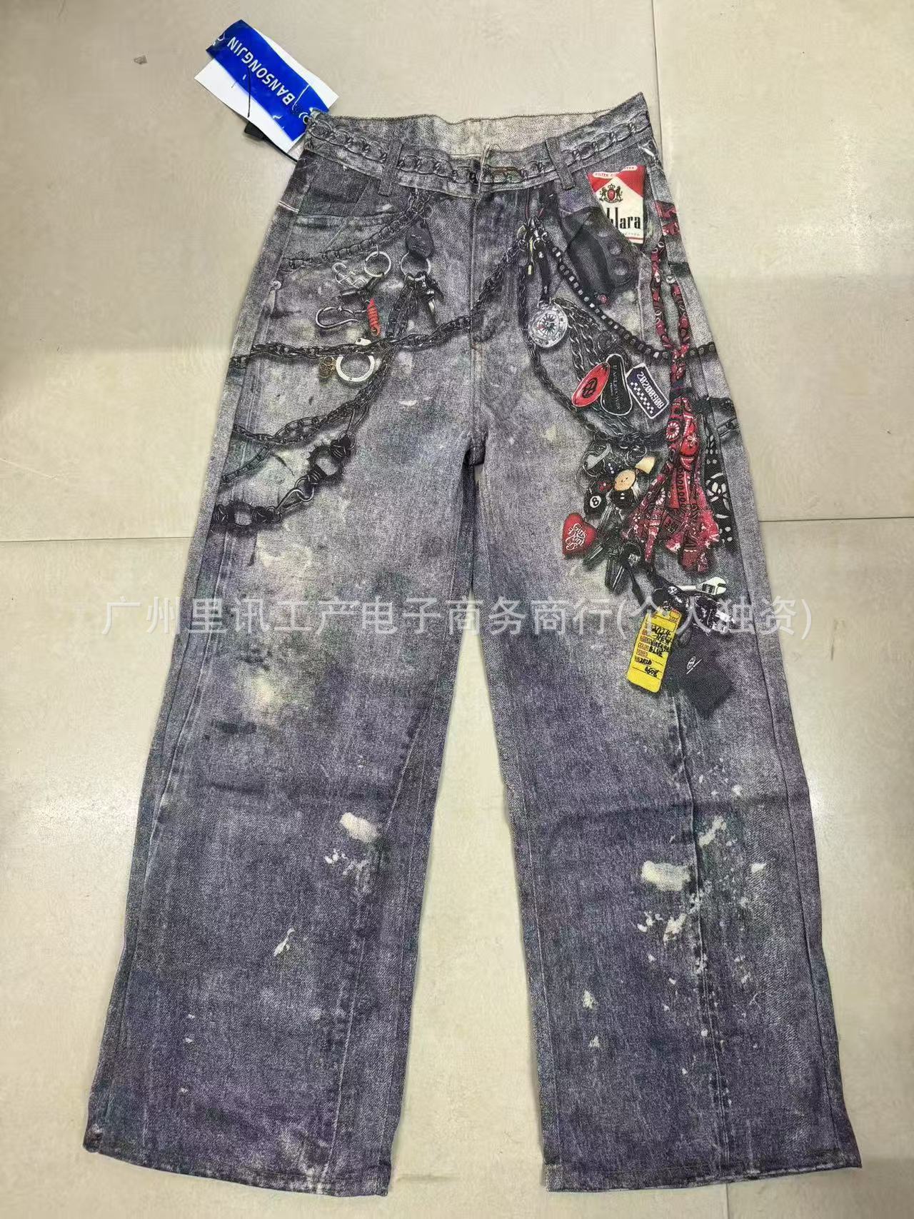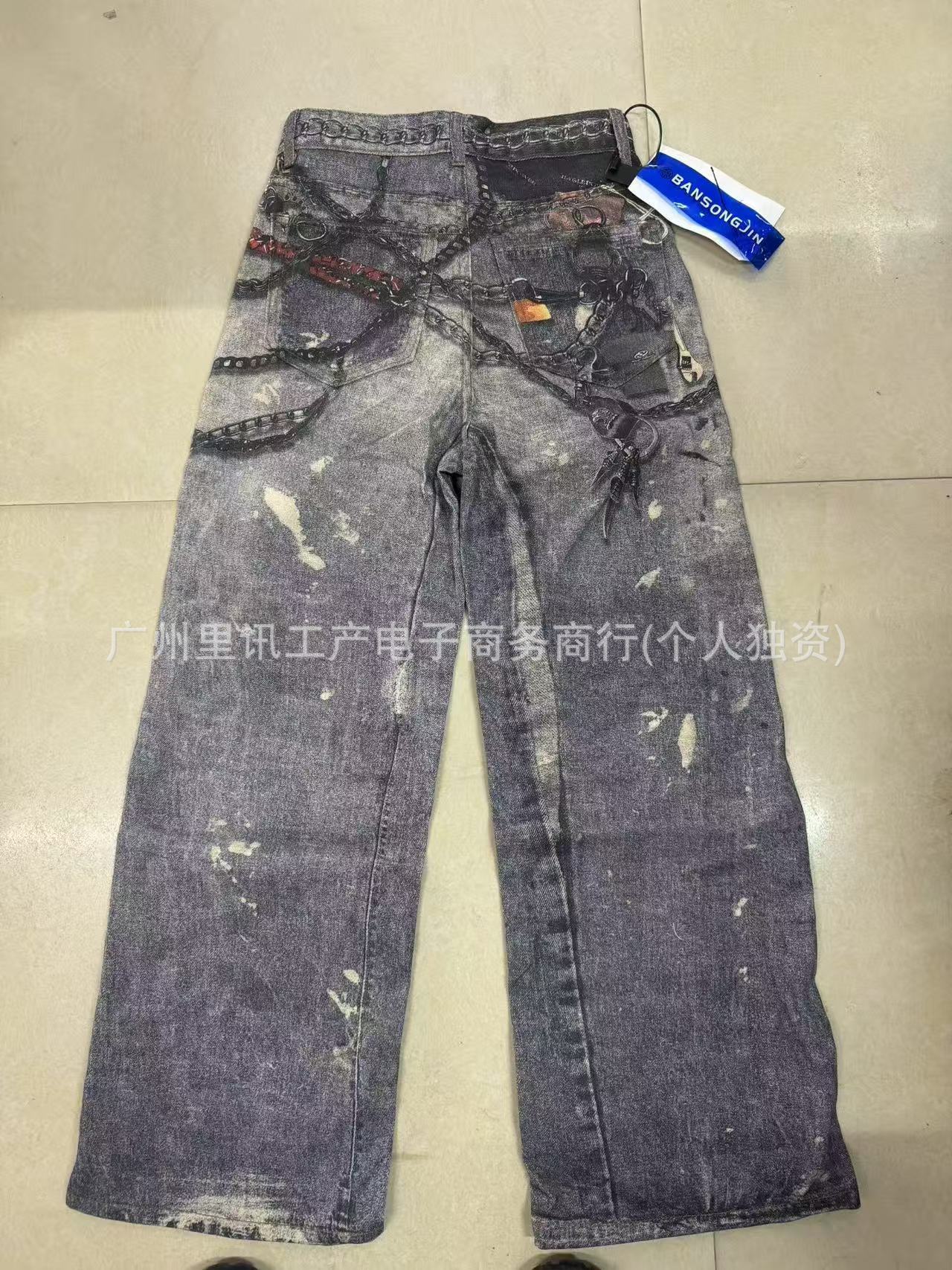 A printed denim trousers