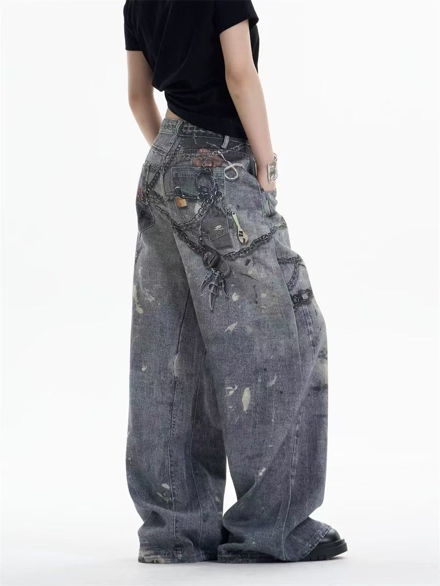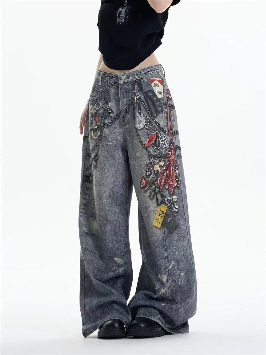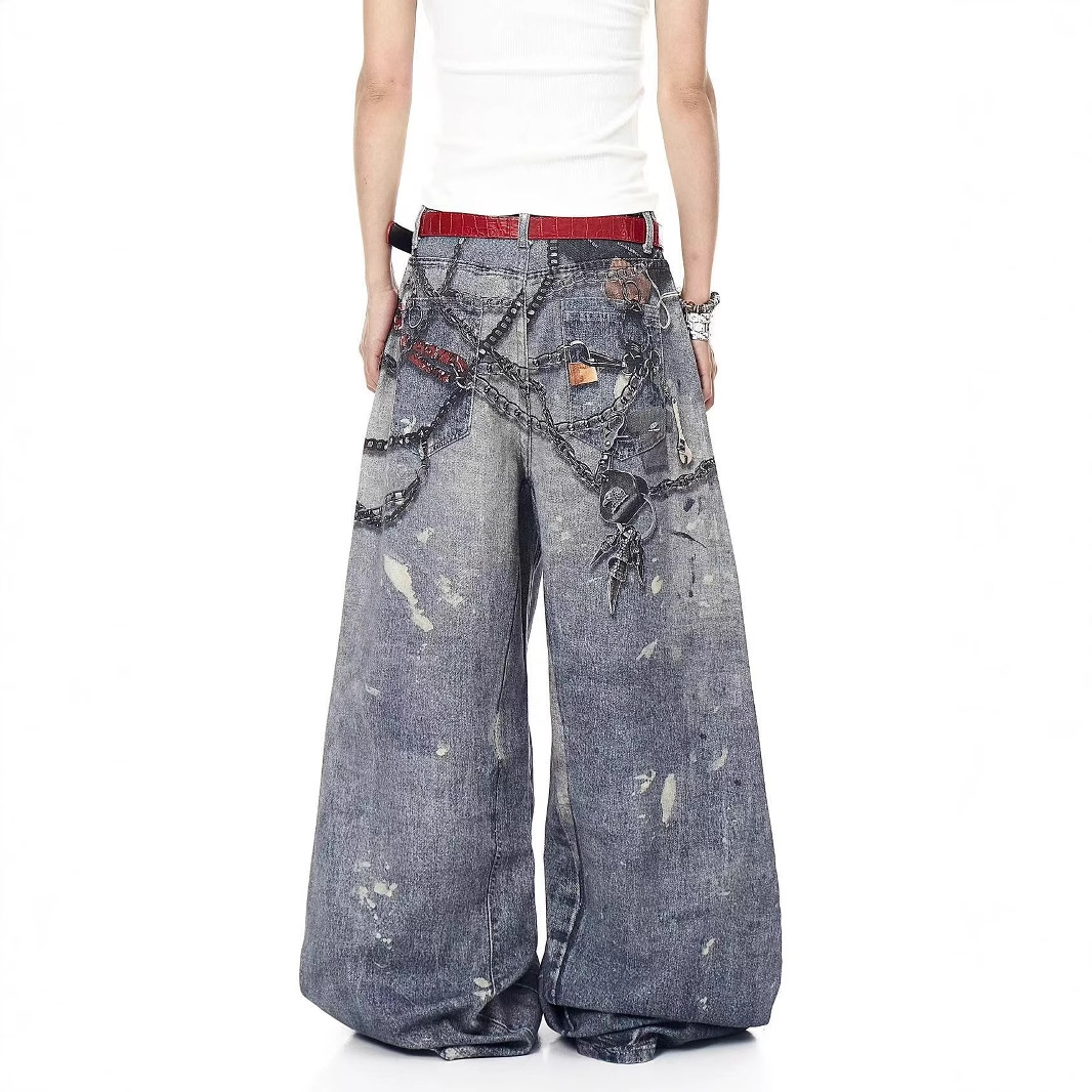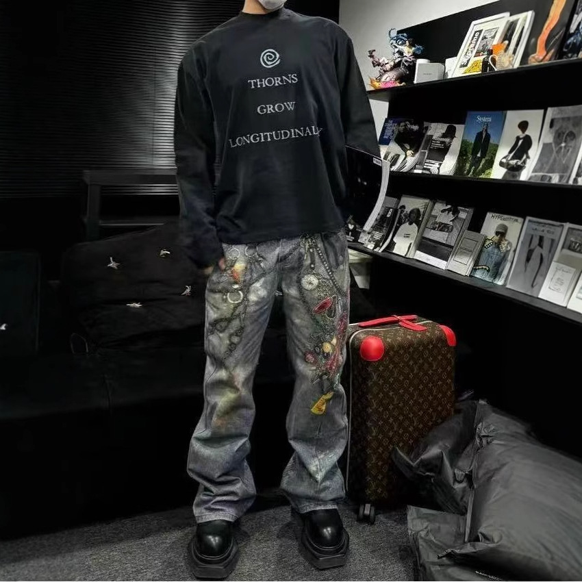 A printed denim trousers