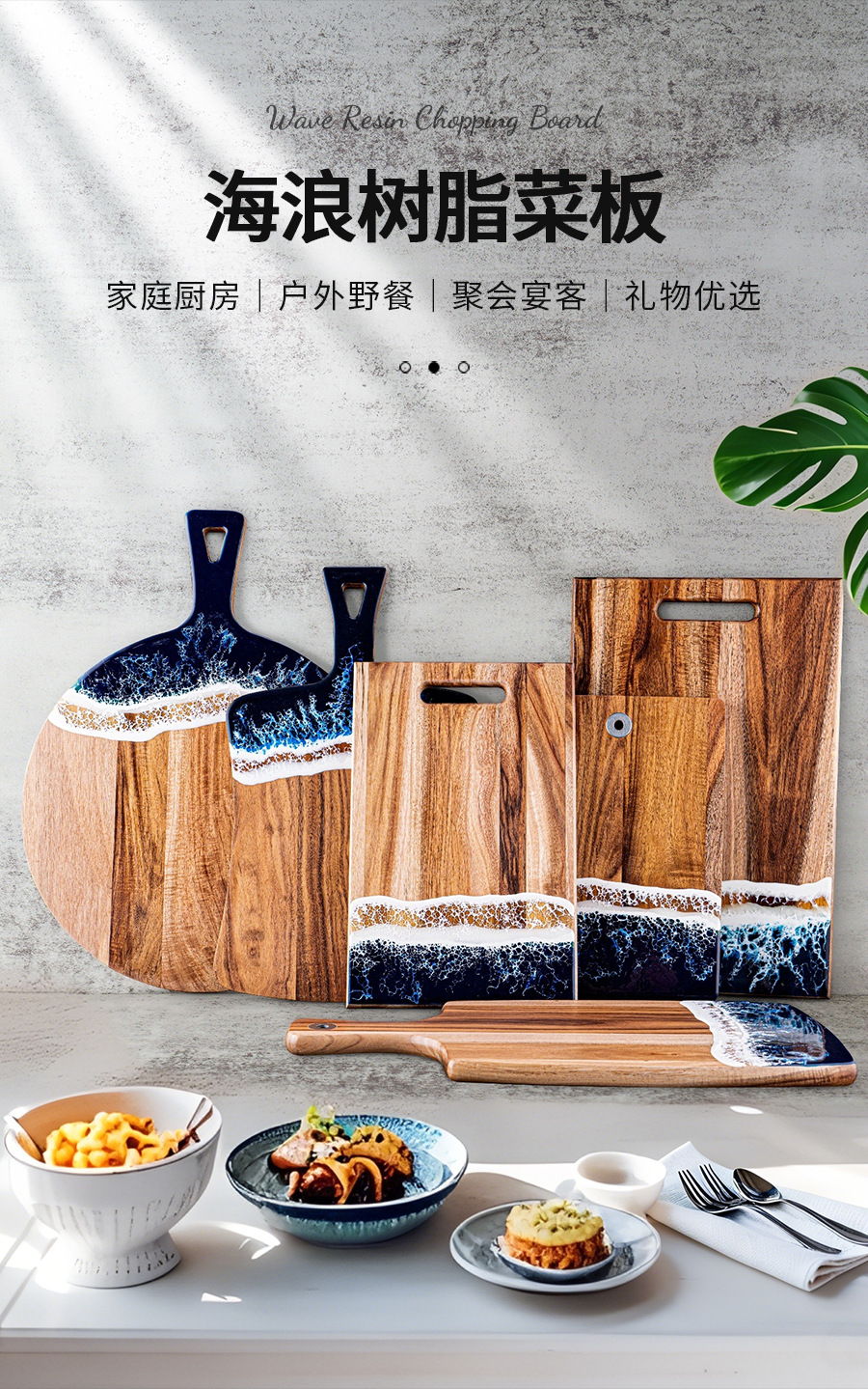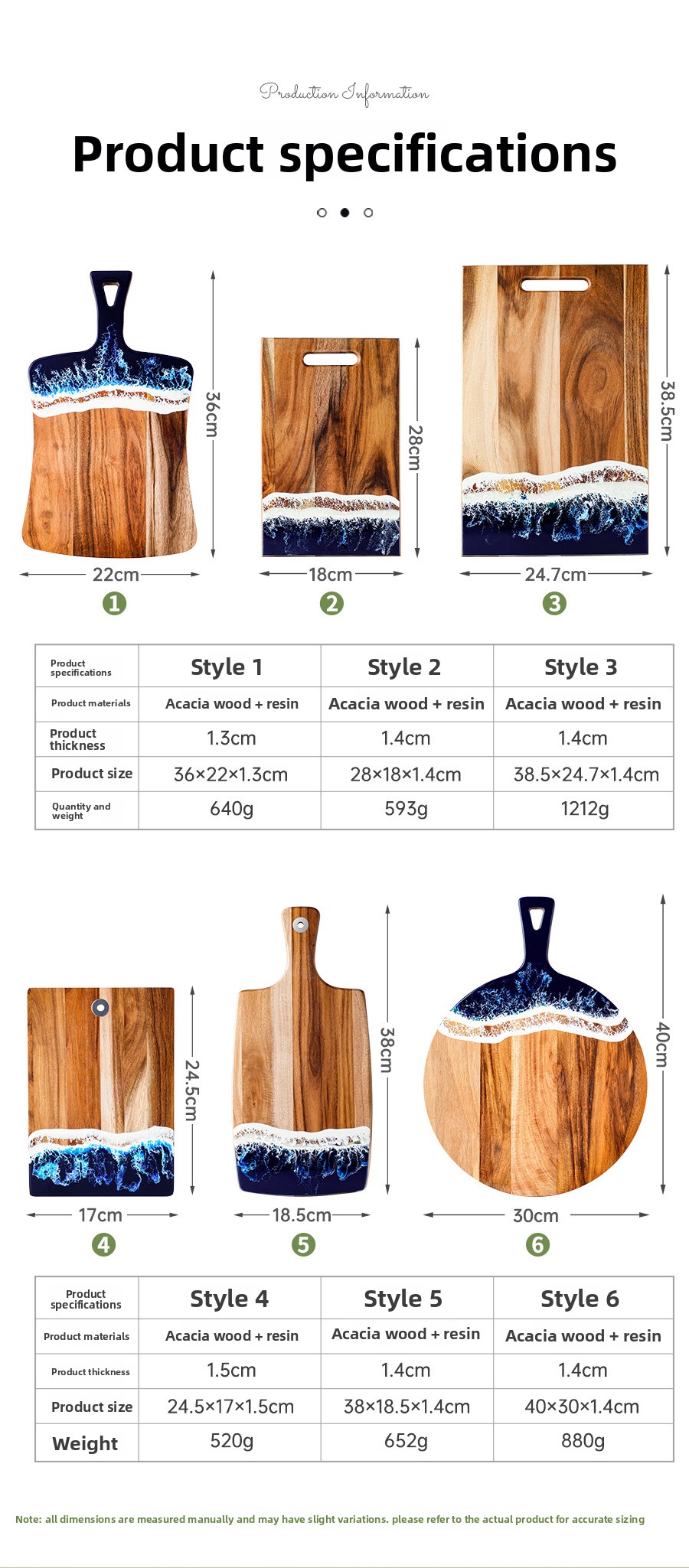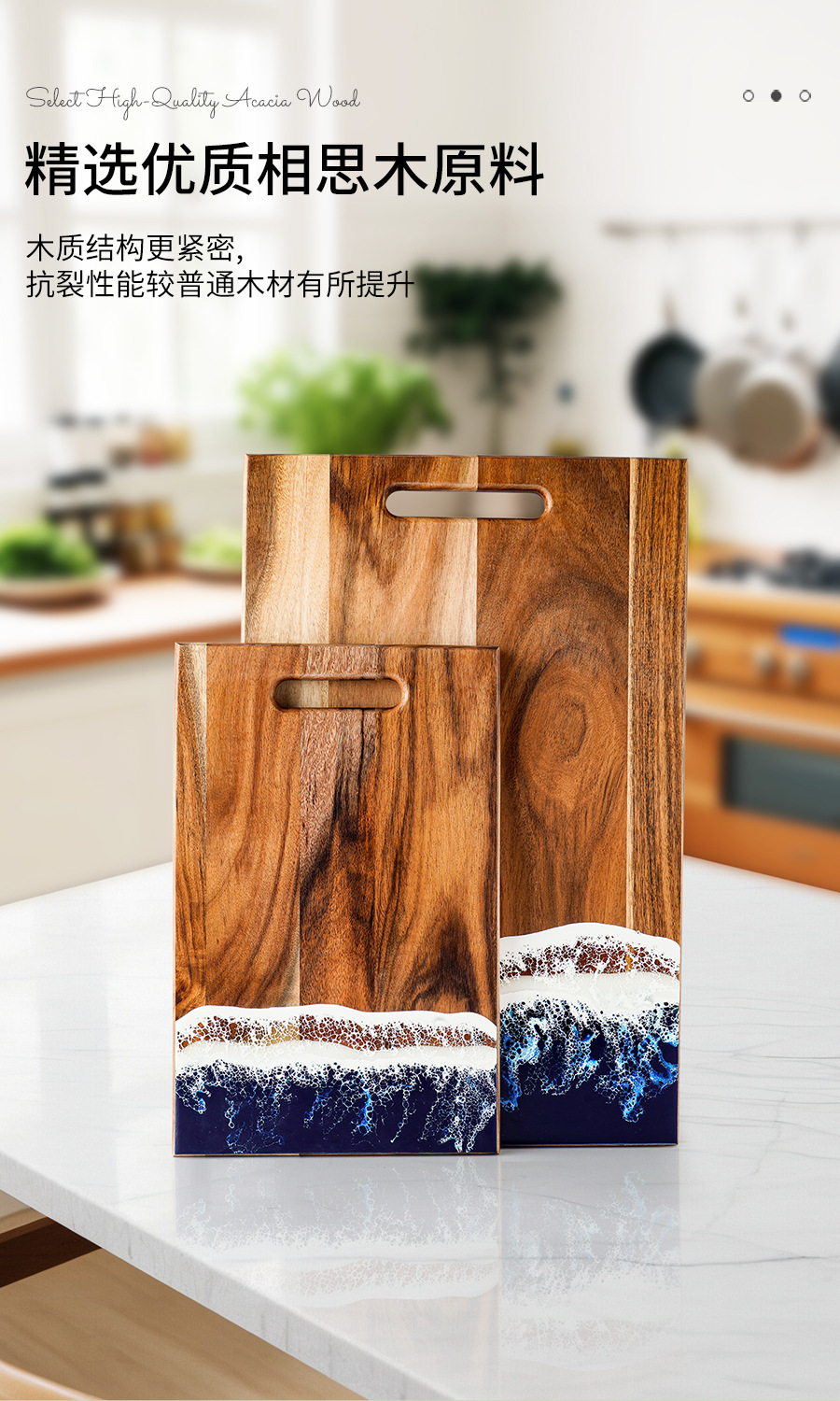 A Wave Resin Cutting Board Epoxy Resin Craft Acacia Wood Cutting Board River Beach Pattern Cooked Food Cutting Board