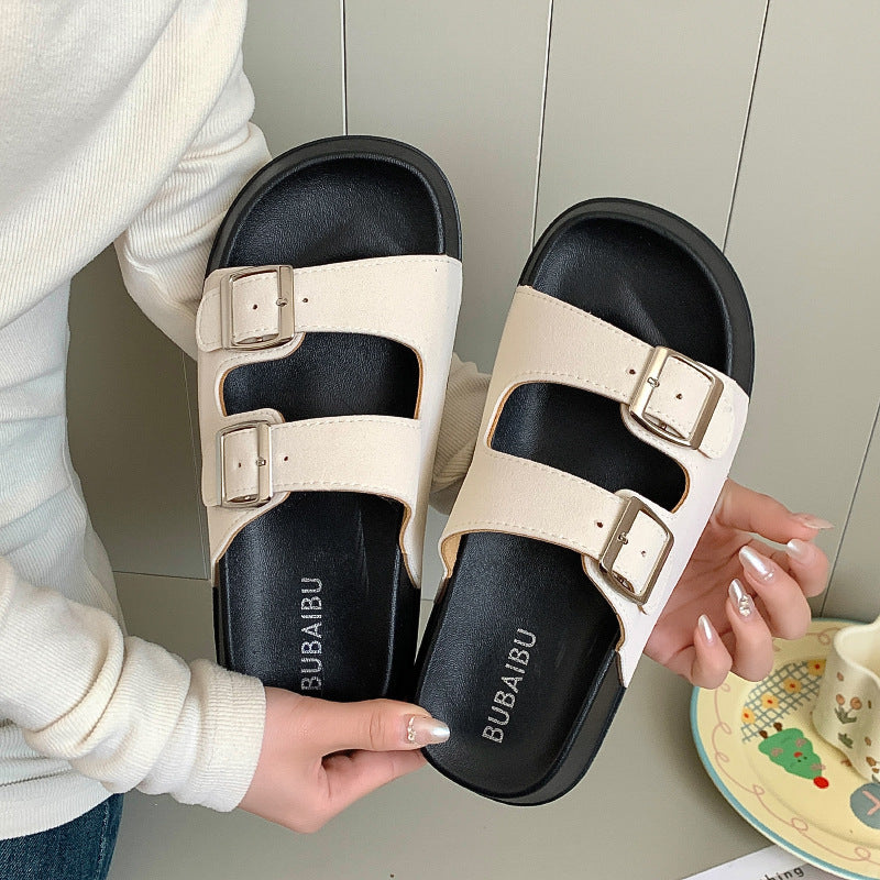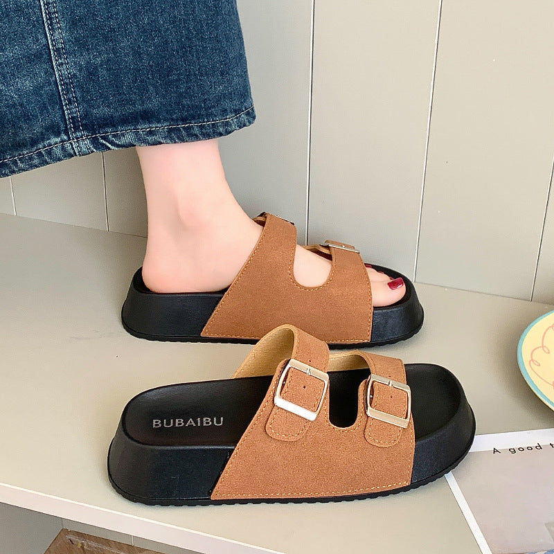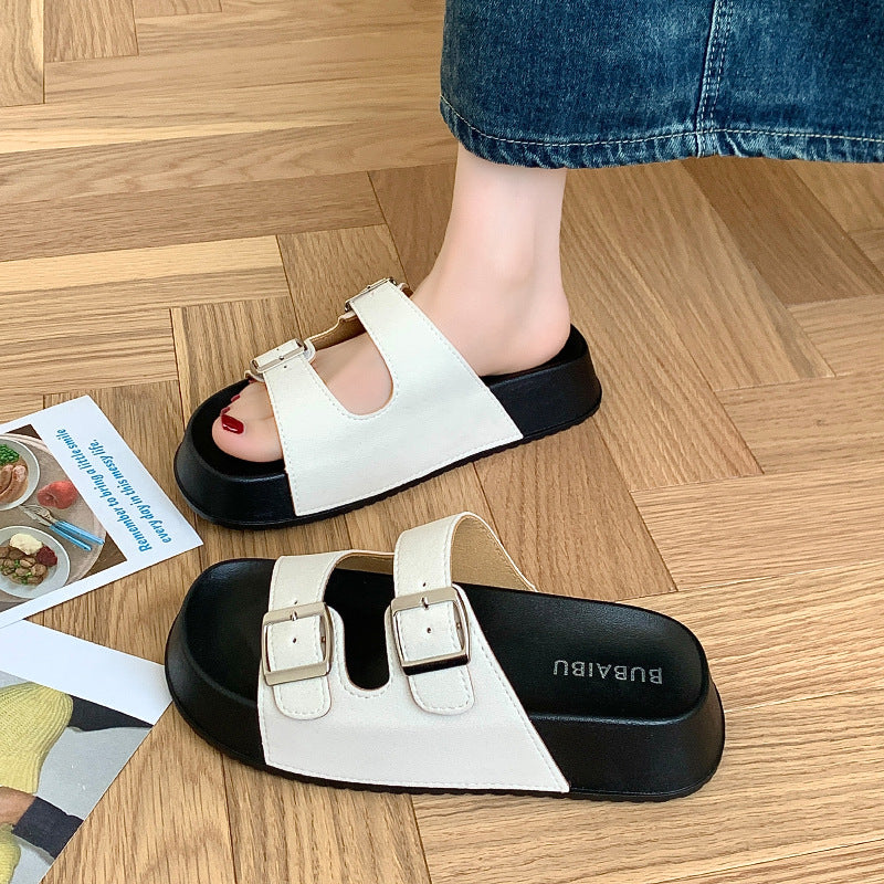 A foreign trade Roman style slippers women's summer new sandals outer wear thick-soled niche all-match buckle seaside beach women's shoes 1