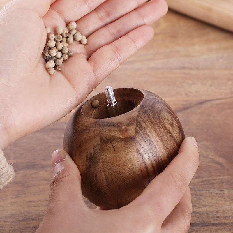 Molinillo de pimienta para moler a mano, herramienta de molienda de partículas de pimienta negra de madera, espesor ajustable, botella de condimento de pimienta recién molida.