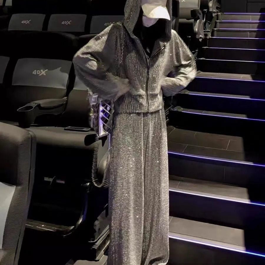 P hot diamond fashion high-end sports suit spring and autumn casual loose Korean version new thin sweater hat trousers two-piece set