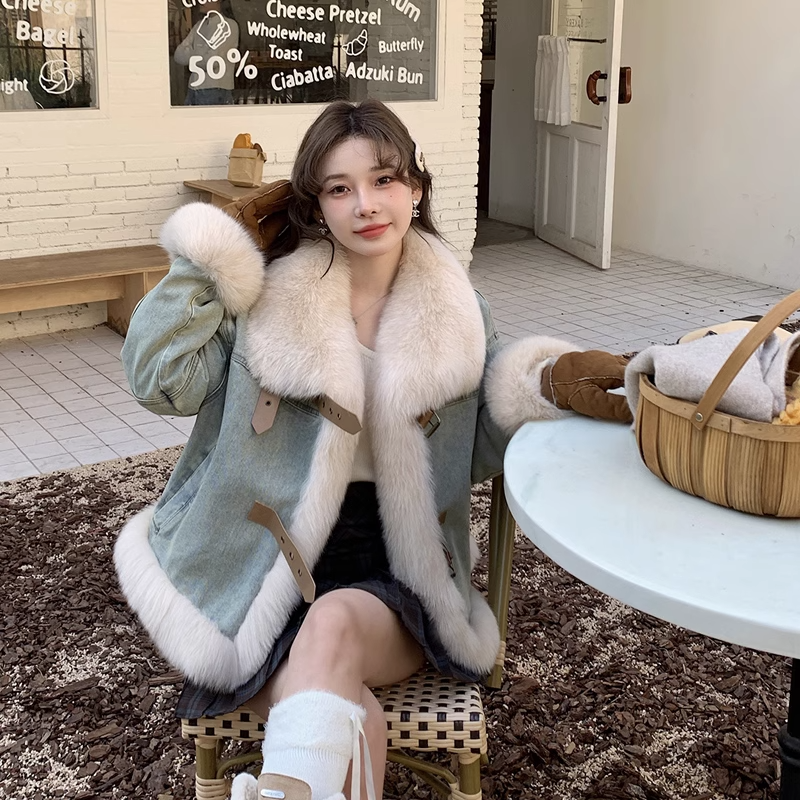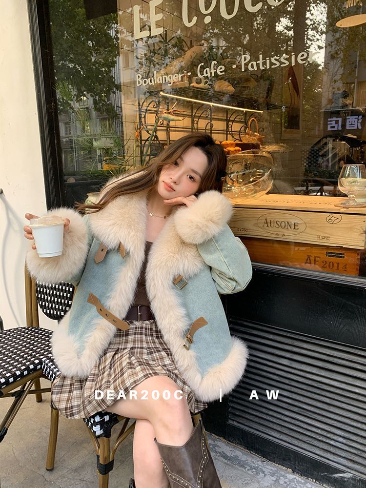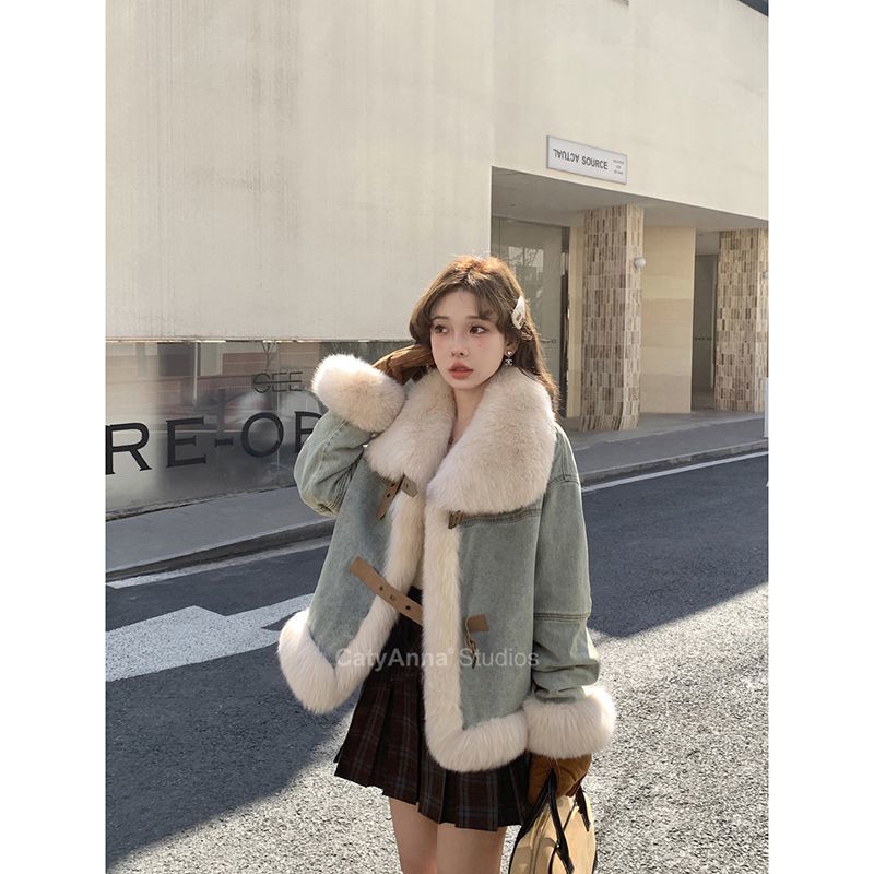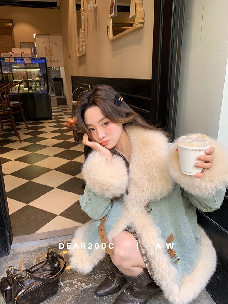 P fur neck denim jacket
