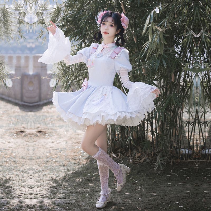 P withpuji original design Chinese style embroidered print sleeve cheongsam lolita summer
