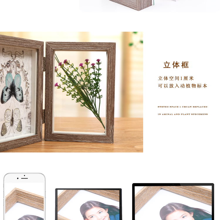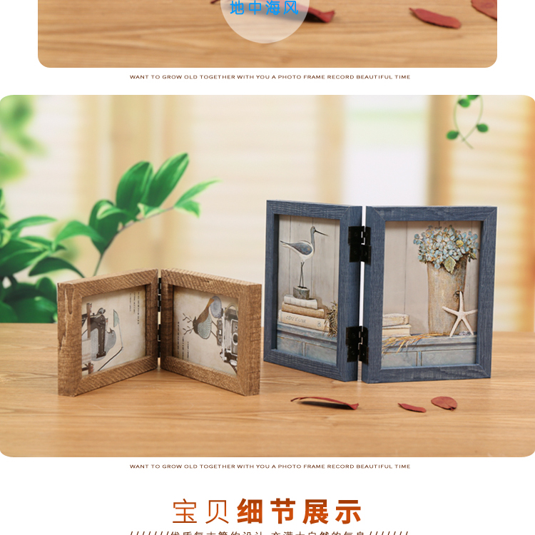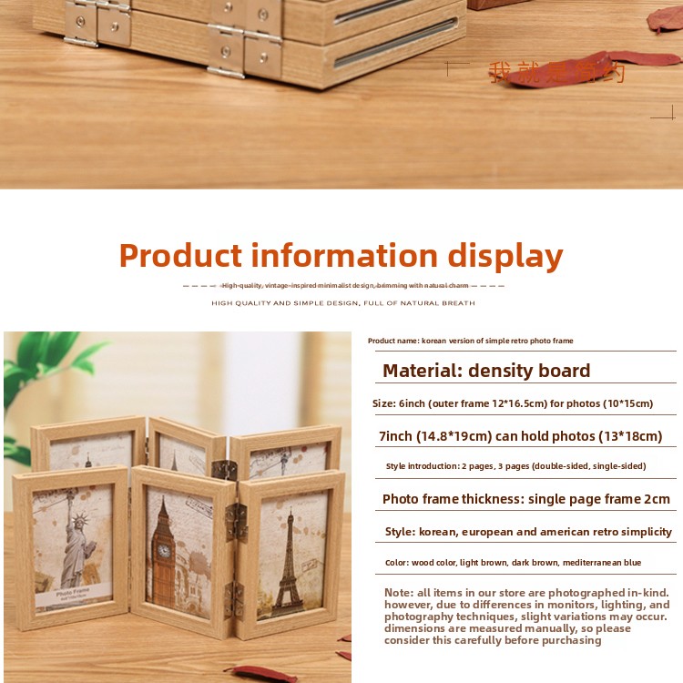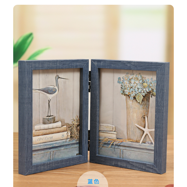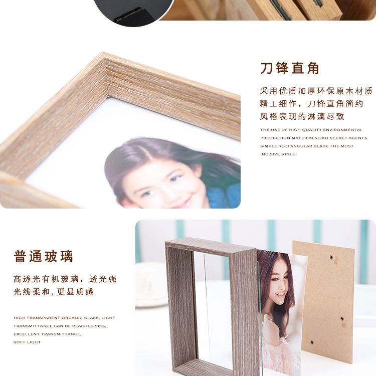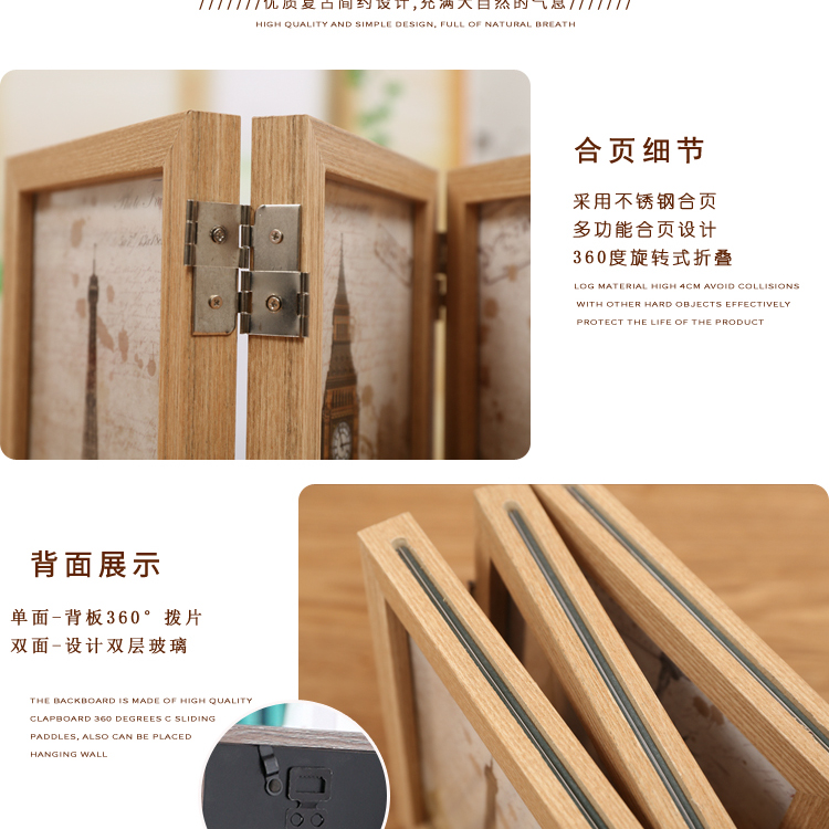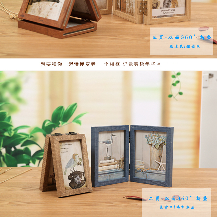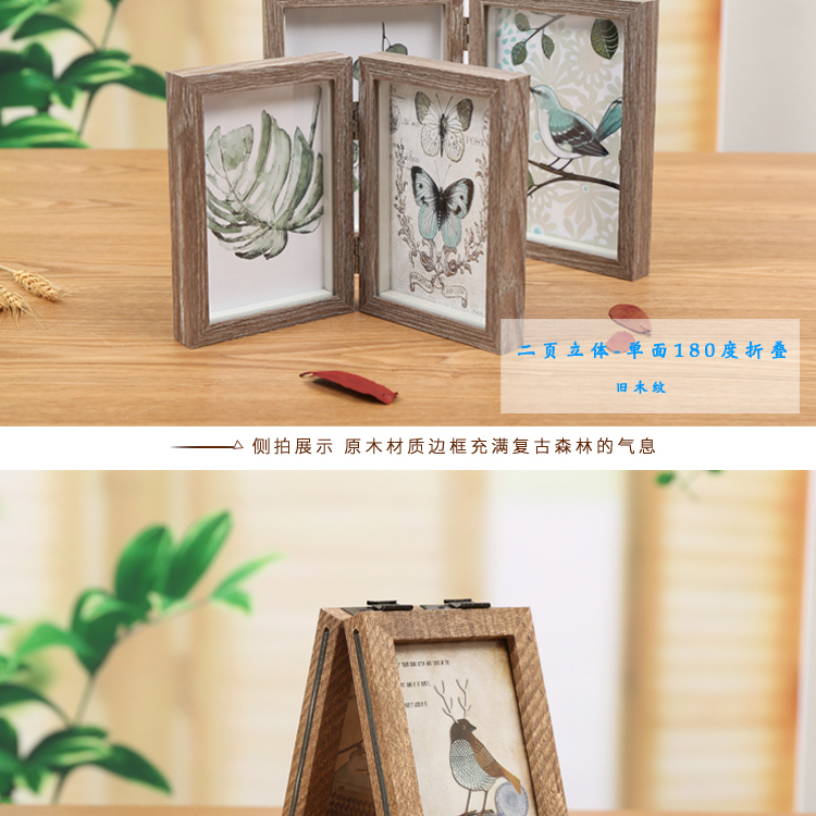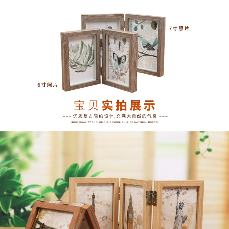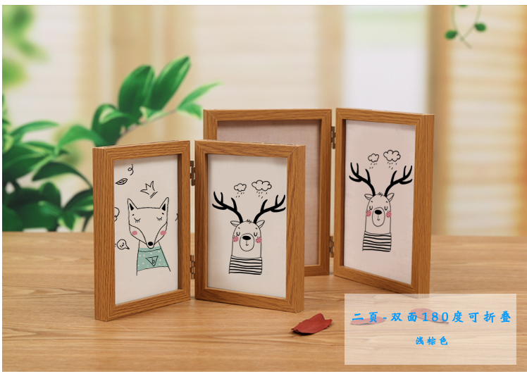 A three-fold wooden photo frame photo frame table 7-inch 8-inch double-sided folding photo frame literary picture frame