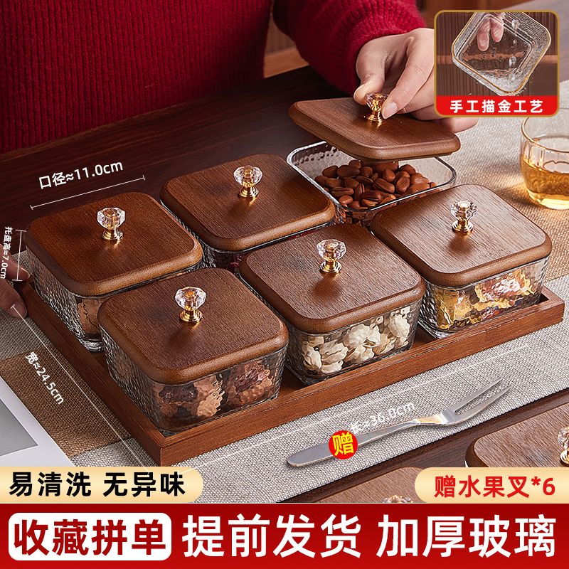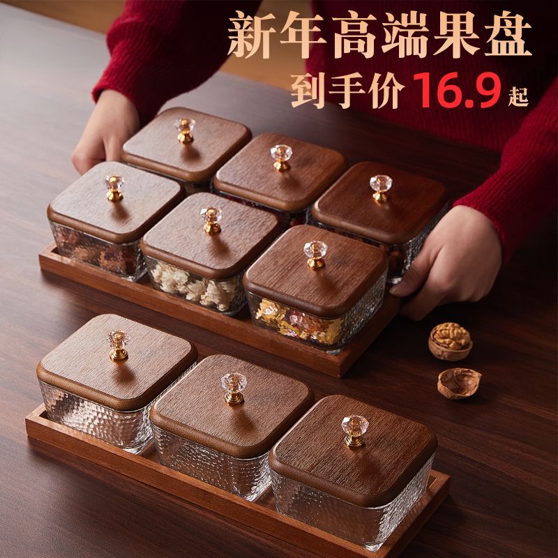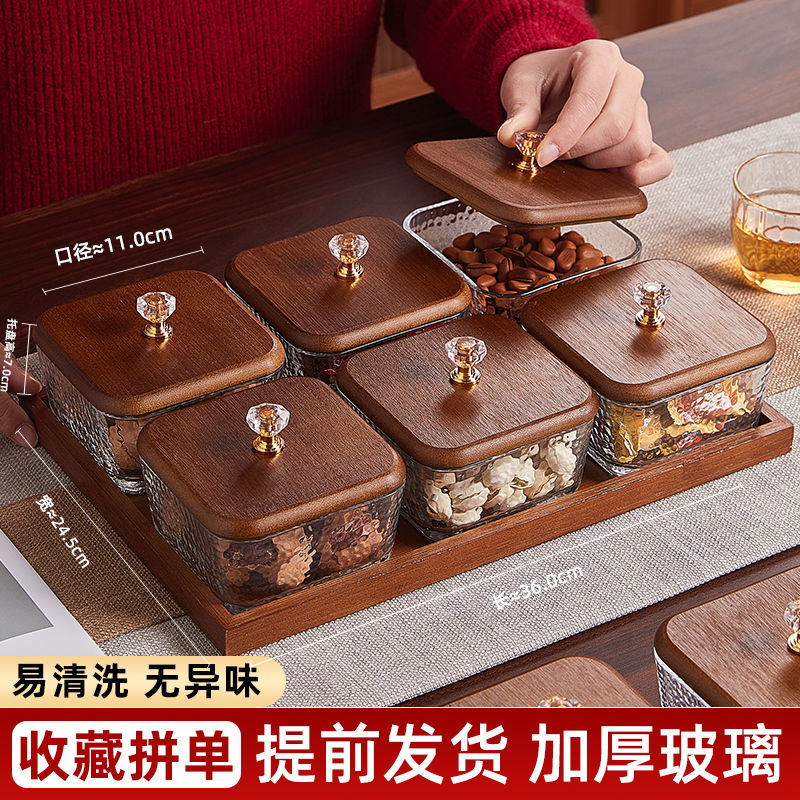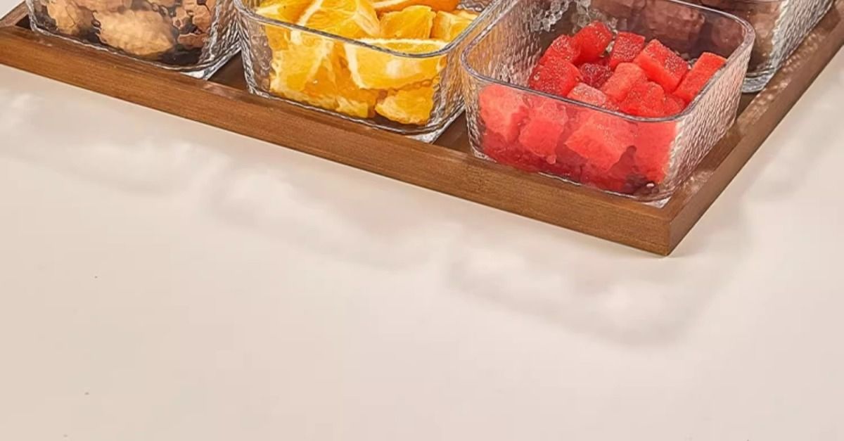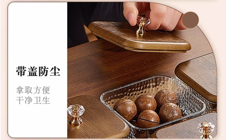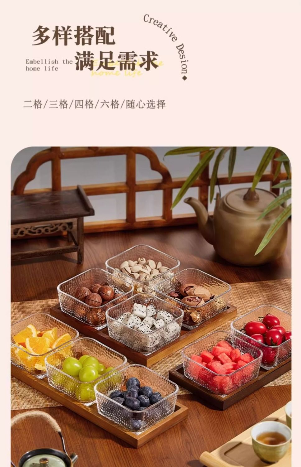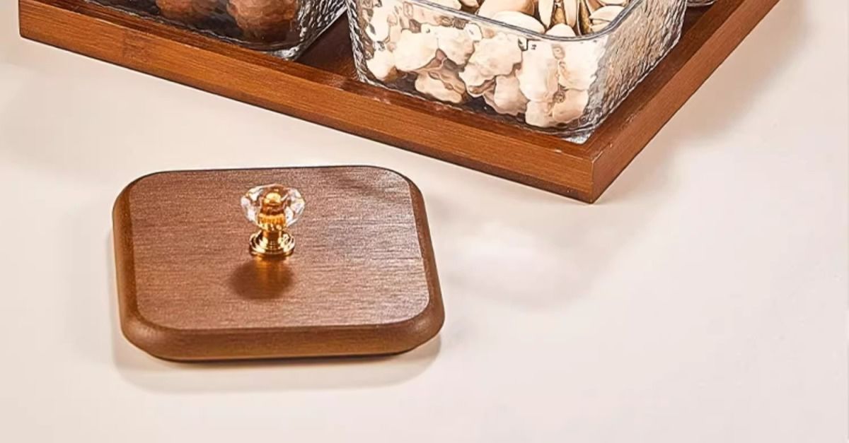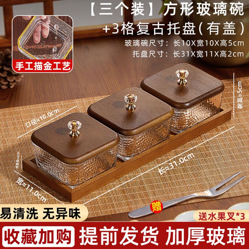 P Bamboo Wood Glass Fruit Snack Plate with Lid
