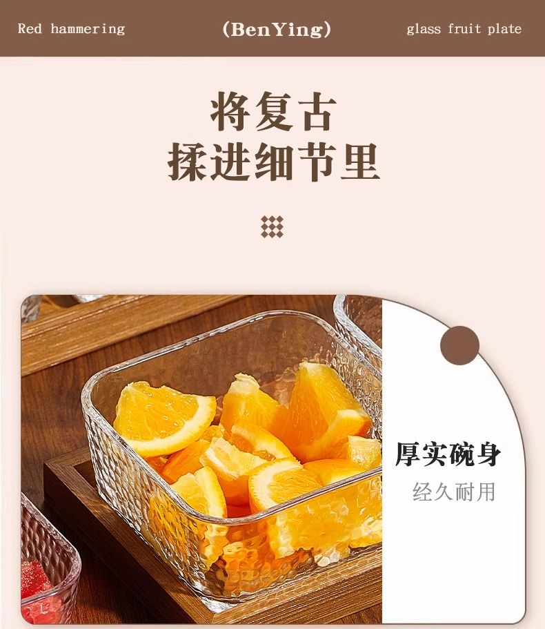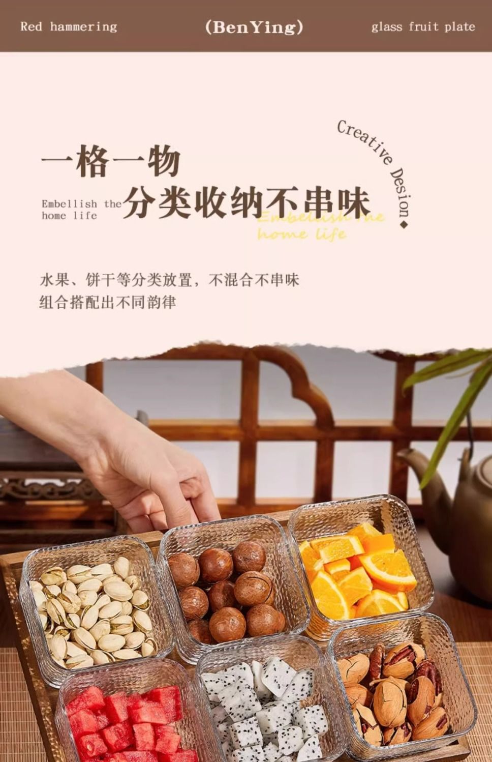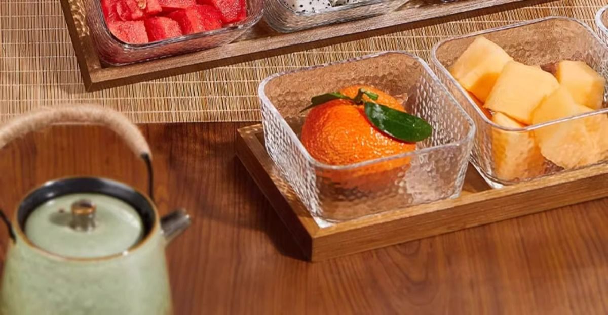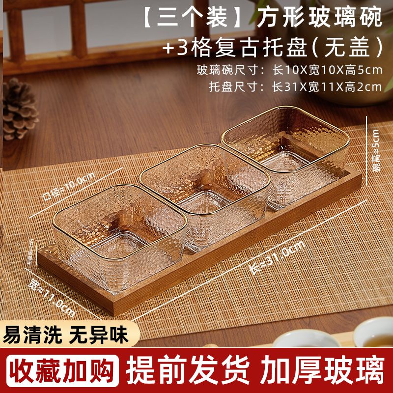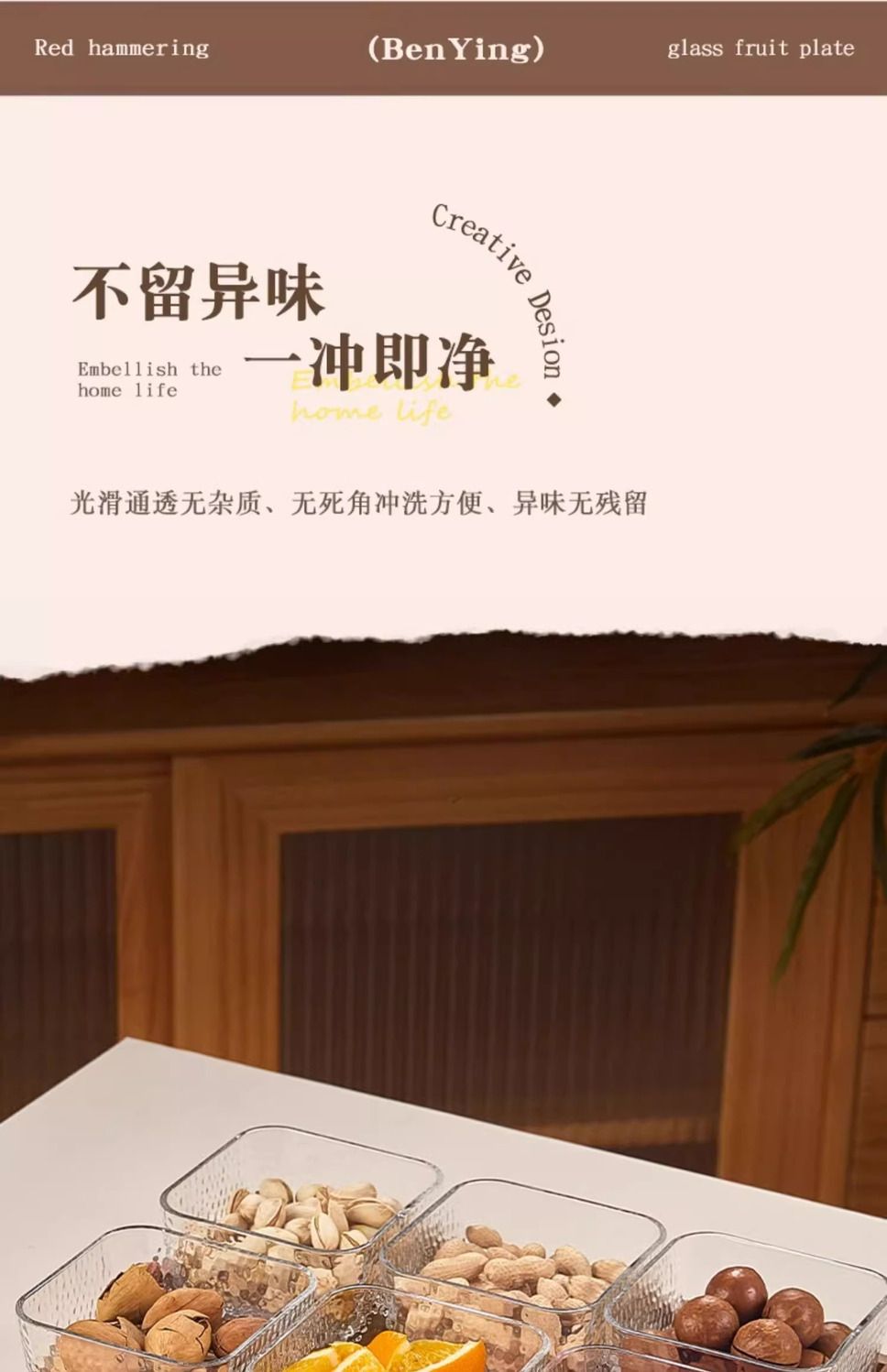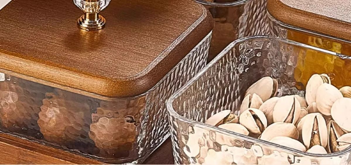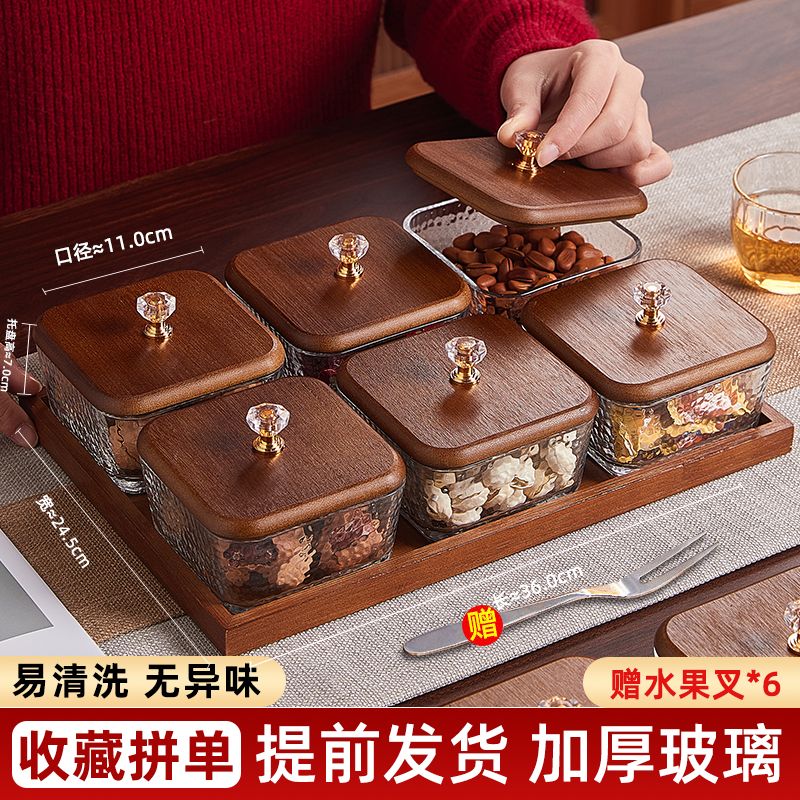 P Bamboo Wood Glass Fruit Snack Plate with Lid