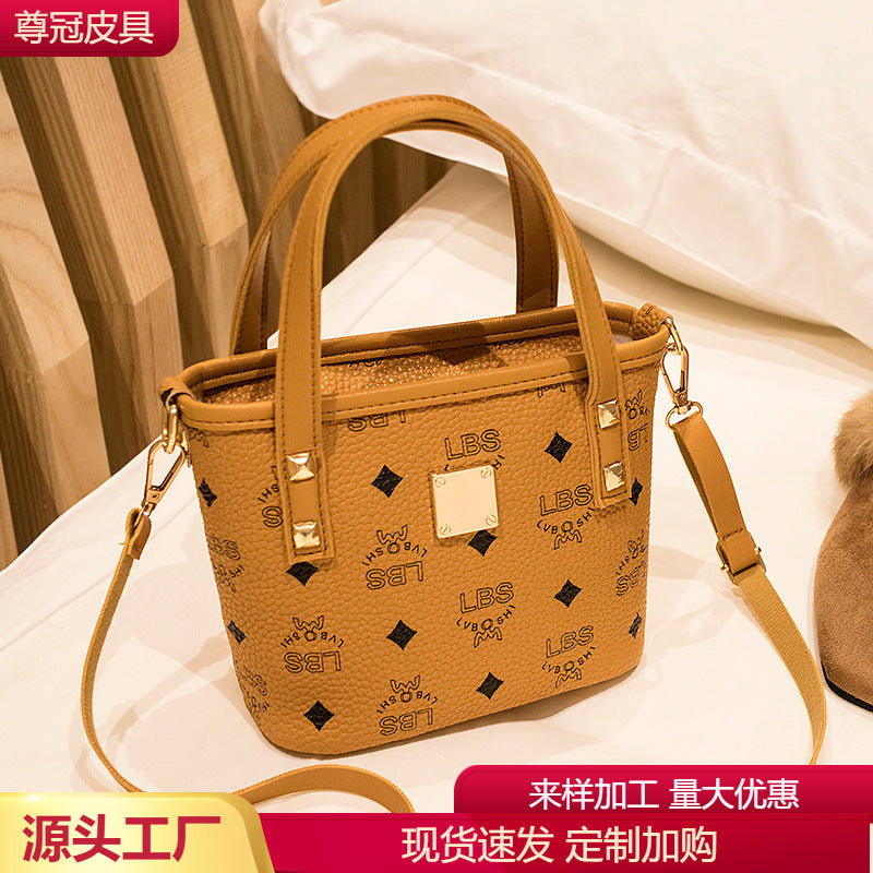 A retro European and American fashion shoulder crossbody portable bucket bag