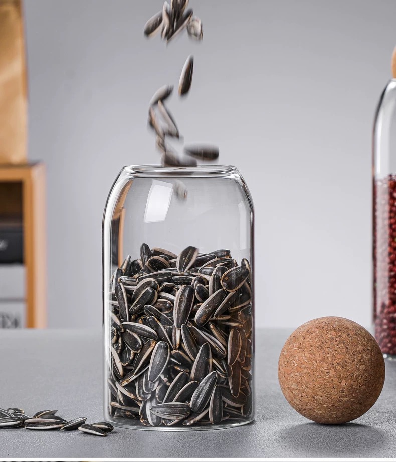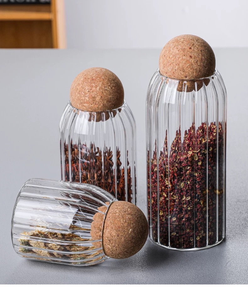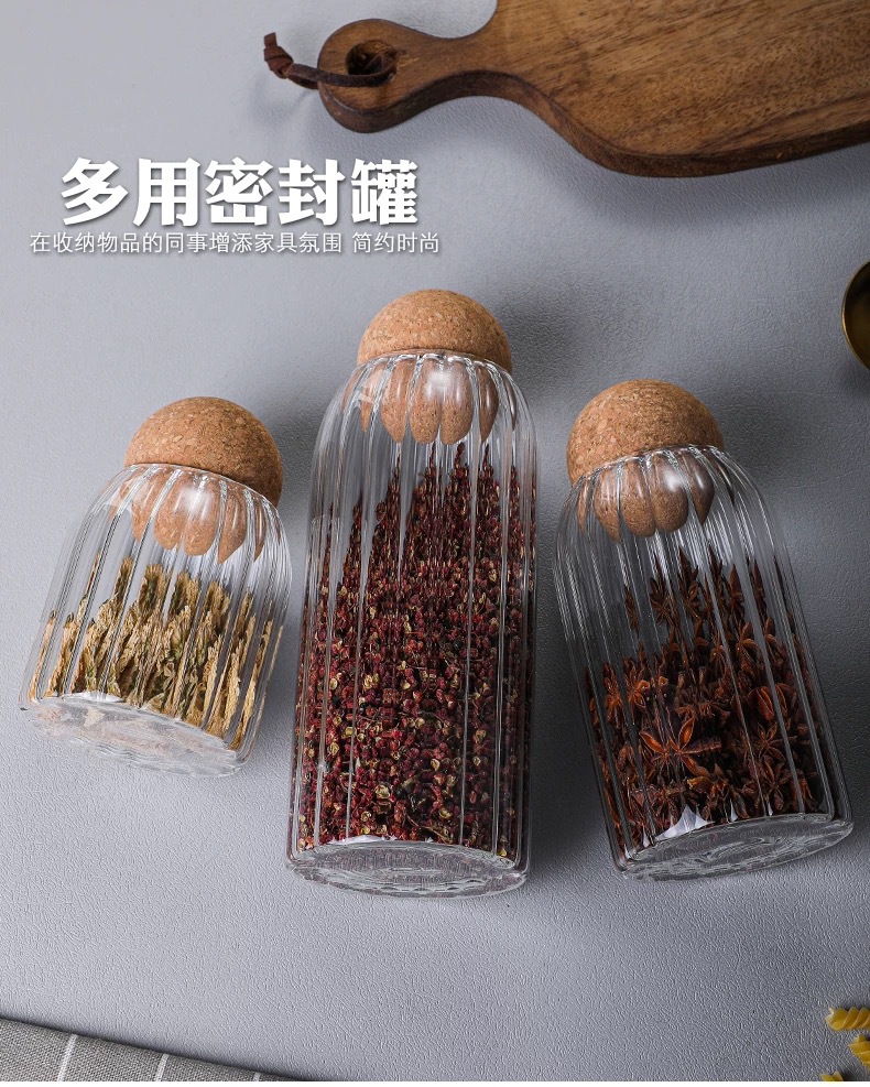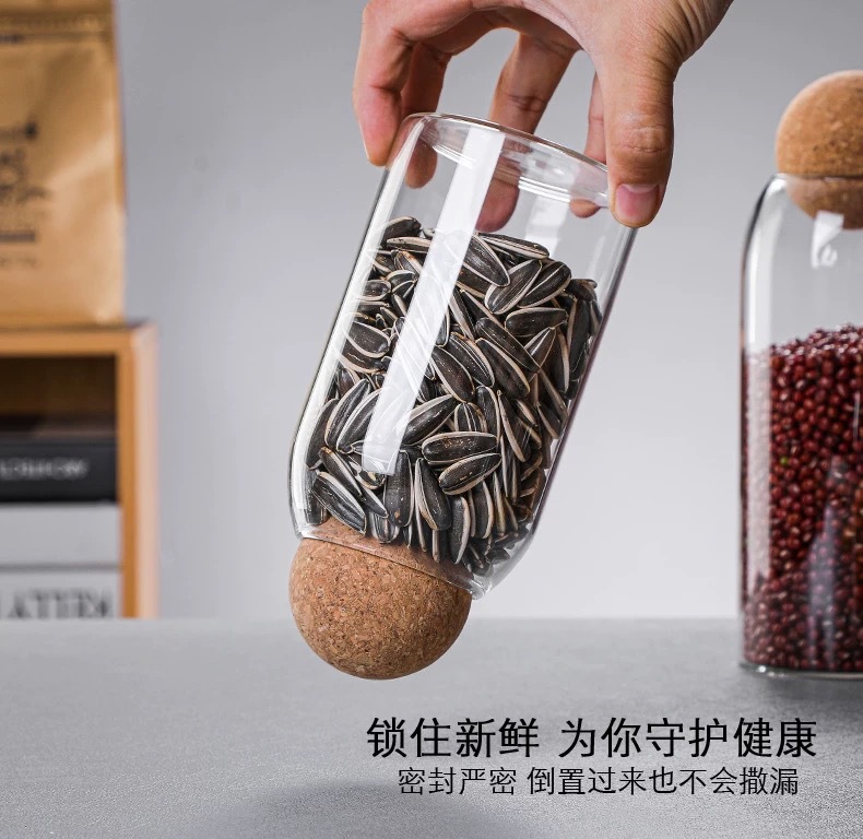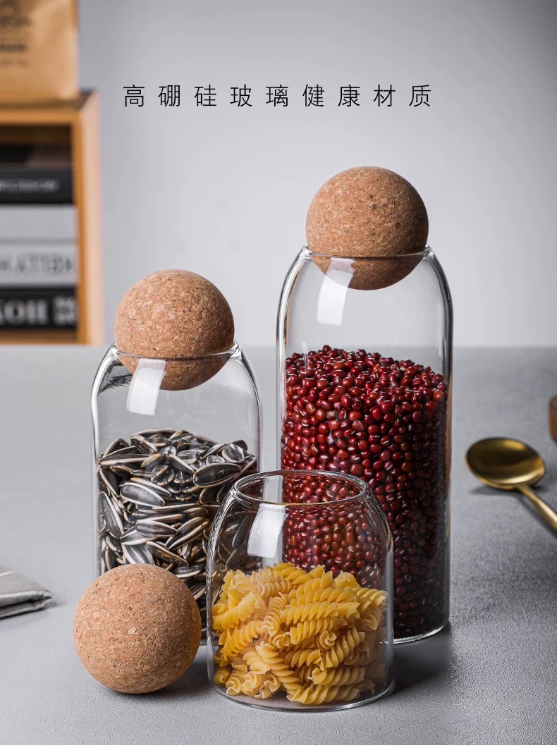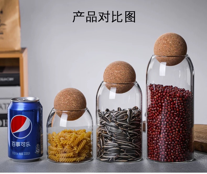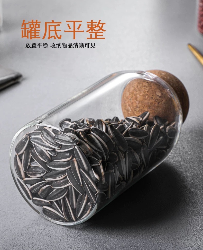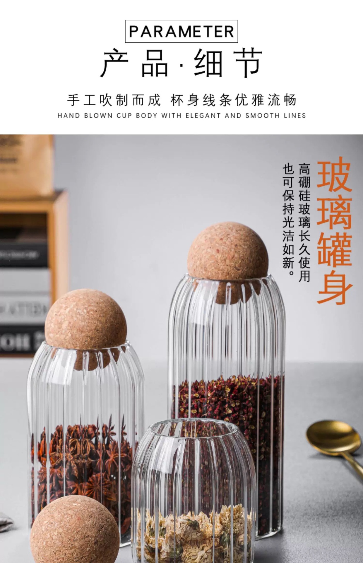 A round cork heat-resistant glass jar tea seal jar flower fruit tea coffee bean display bottle household jar storage