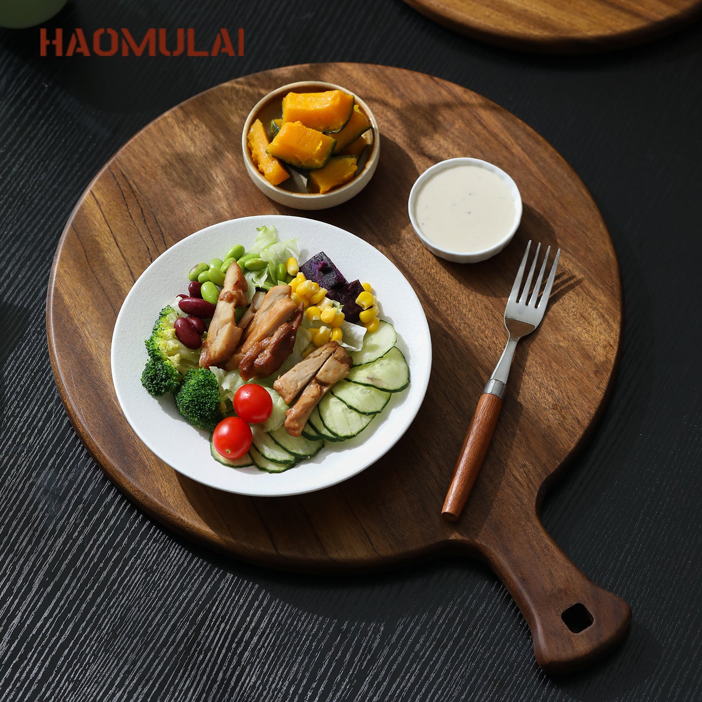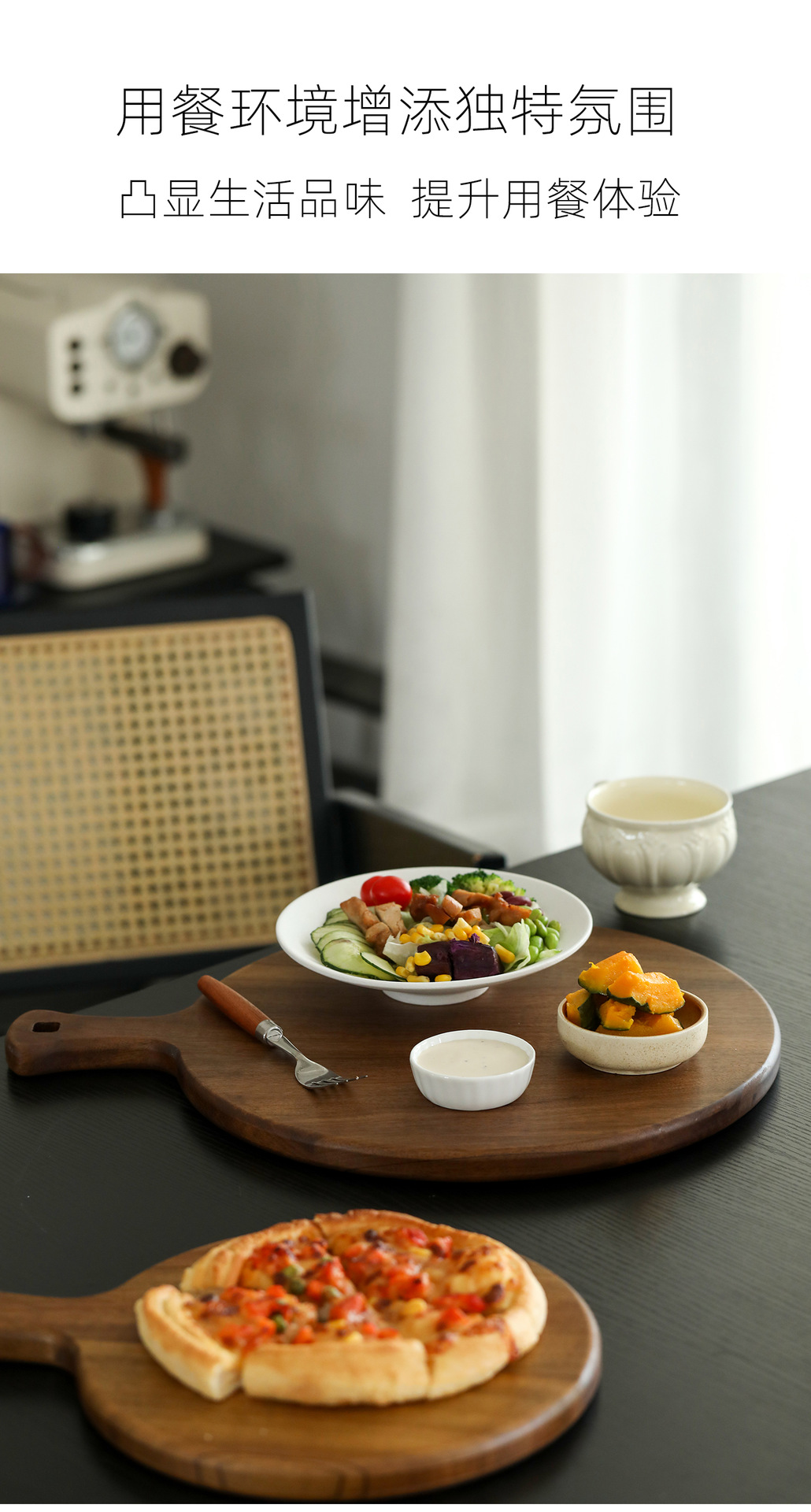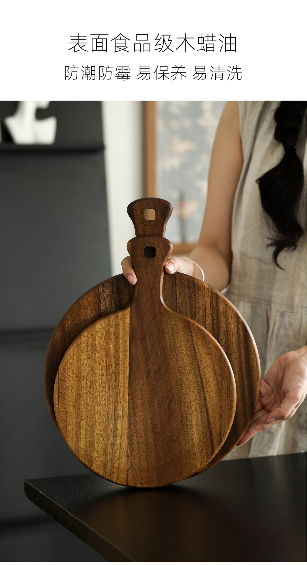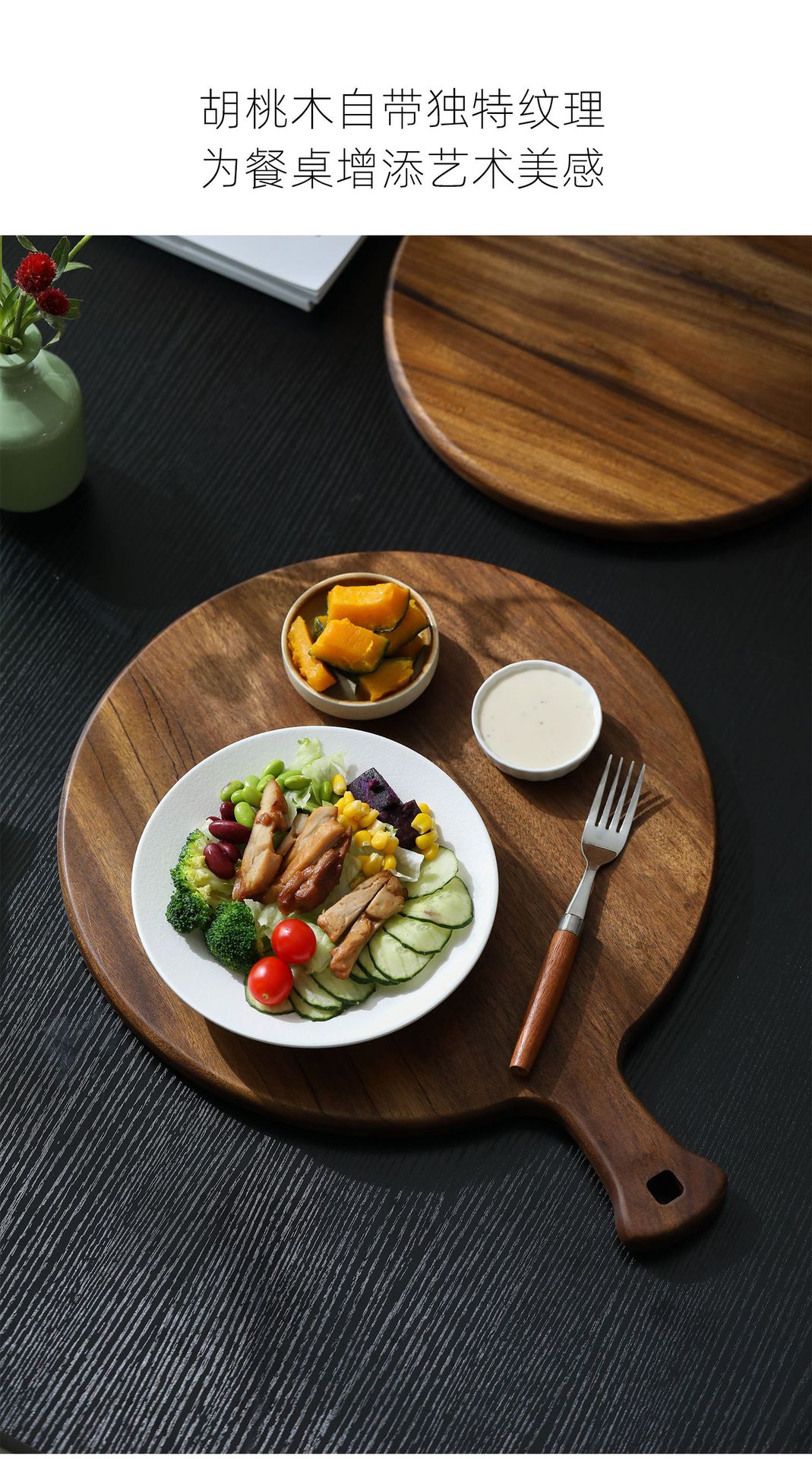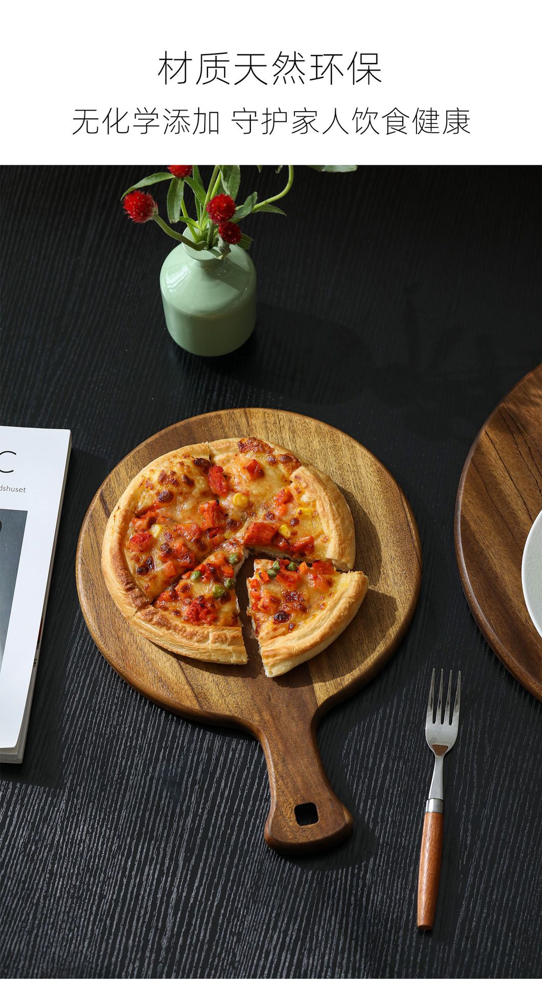 A Round pizza plate Commercial solid wood pizza plate Tray Wooden 9/10/12 inch steak plate Fruit complementary food plate