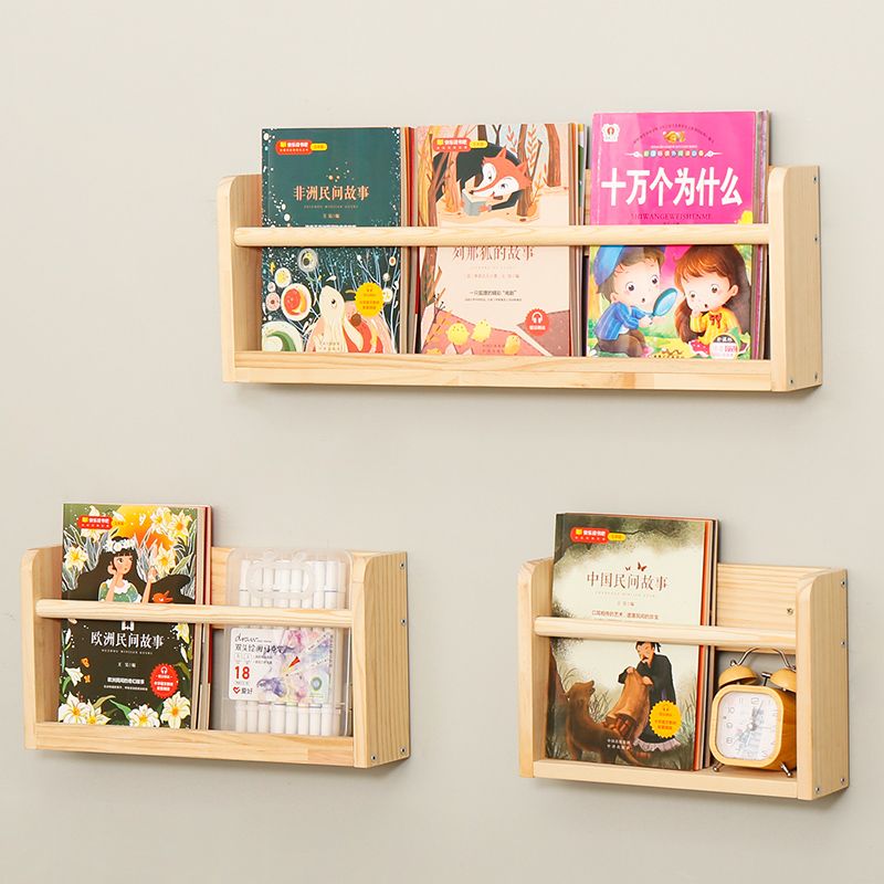 P Solid wood wall-mountedShelf Picture book shelf Children's bookshelf