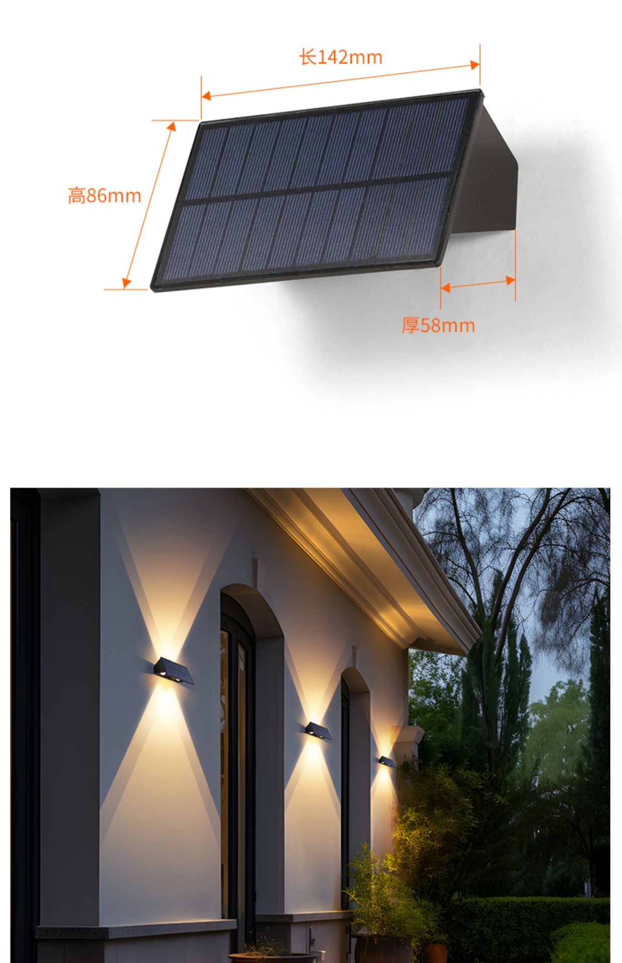 A Super bright solar outdoor wall light Balcony layout Wall washer light Garden decoration Wall waterproof atmosphere Garden light
