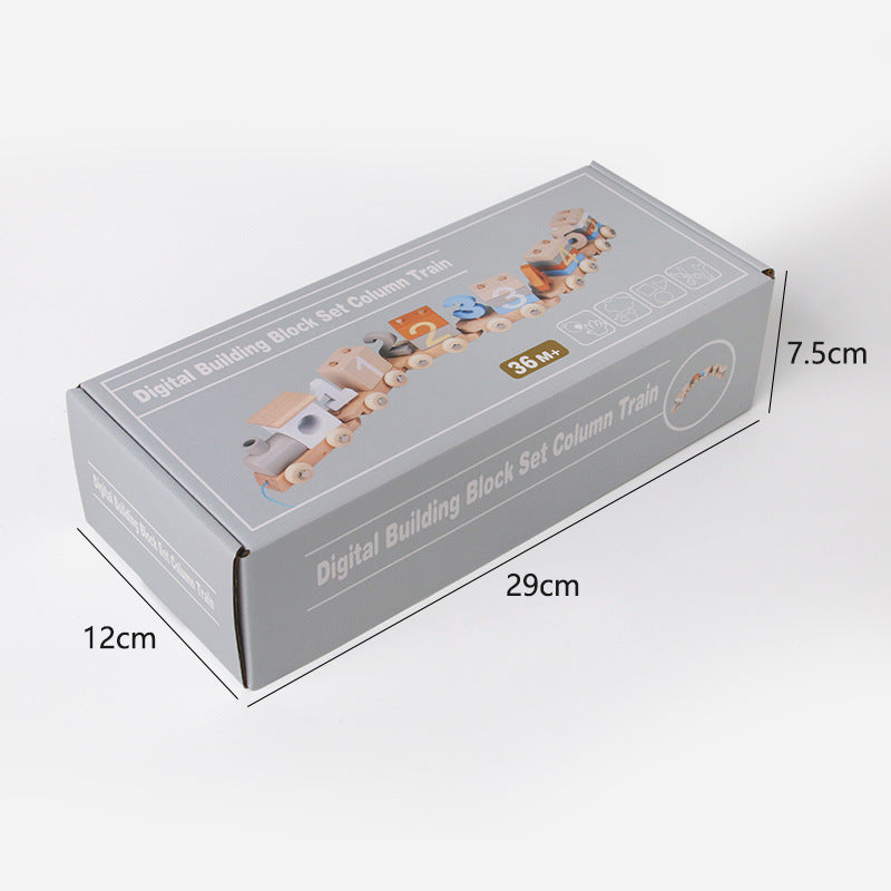 A young children wooden early education enlightenment digital color cognition collage building block drag small train educational toy