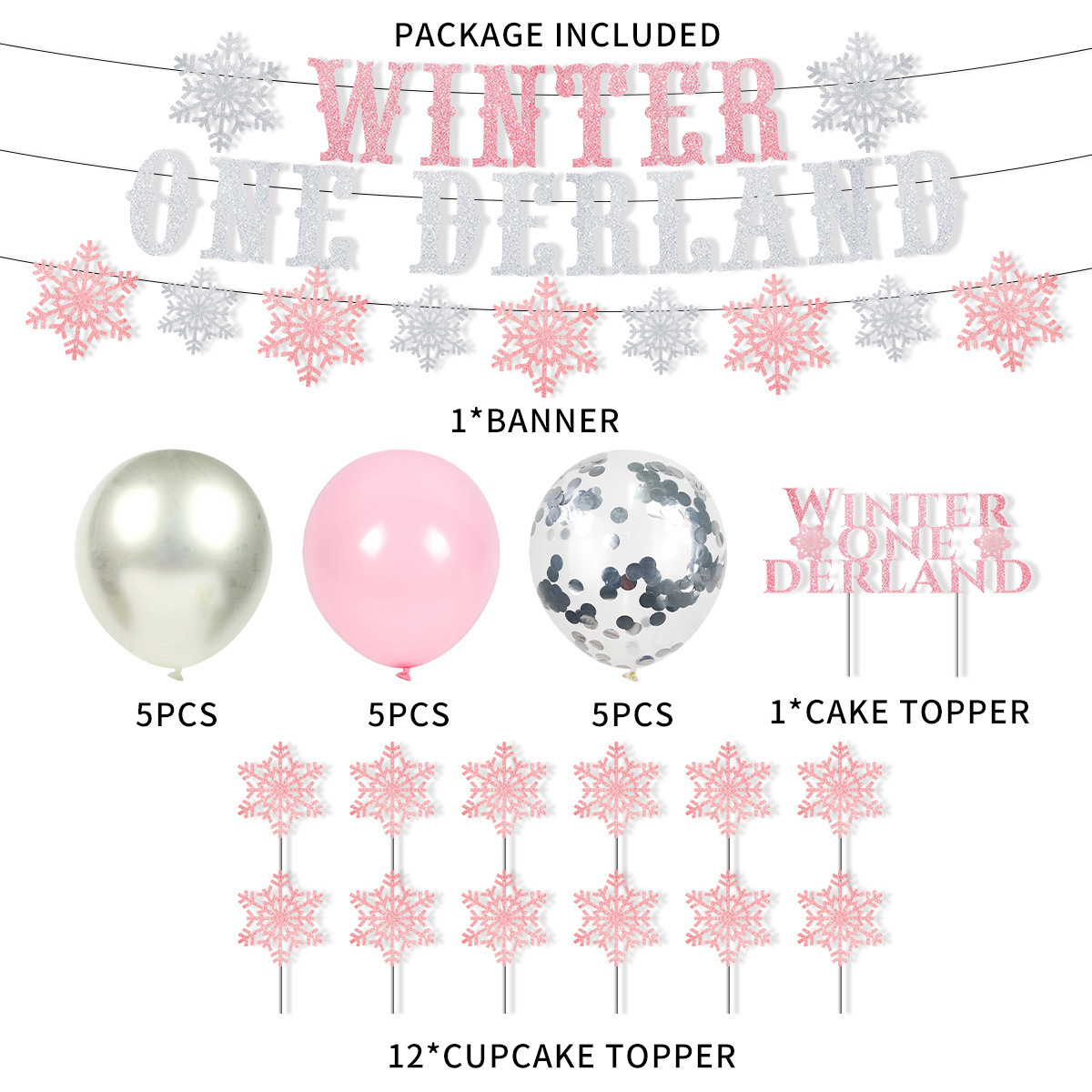 The package includes: 2 flags + 1 cake flag + 12 paper cups + 15 mixed-color balloons + 2 balloon ropes