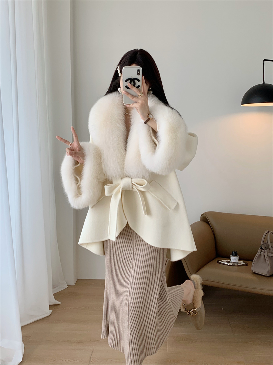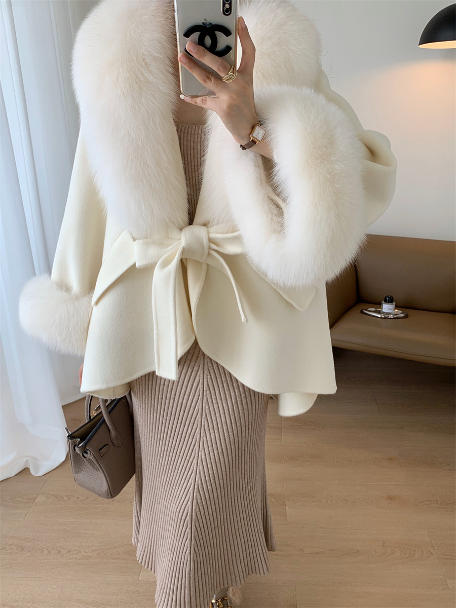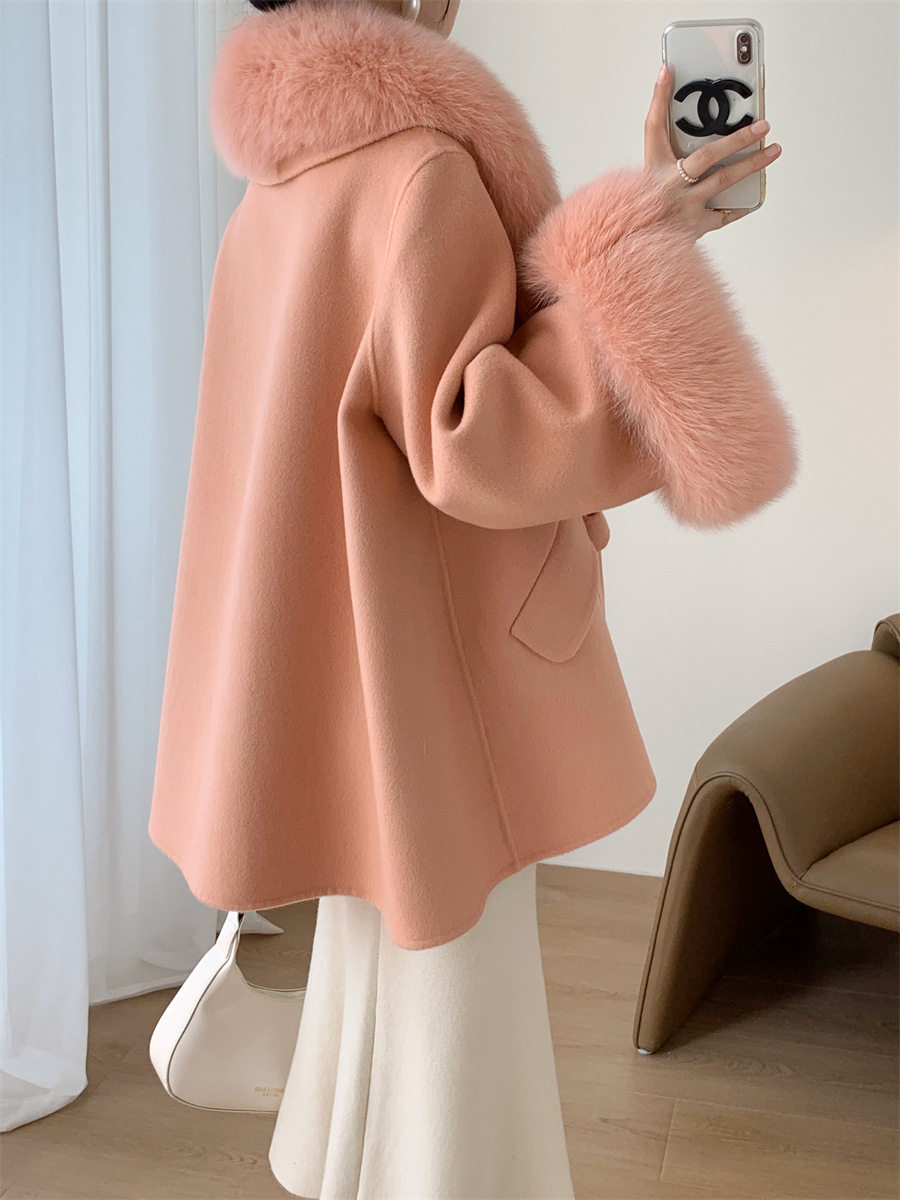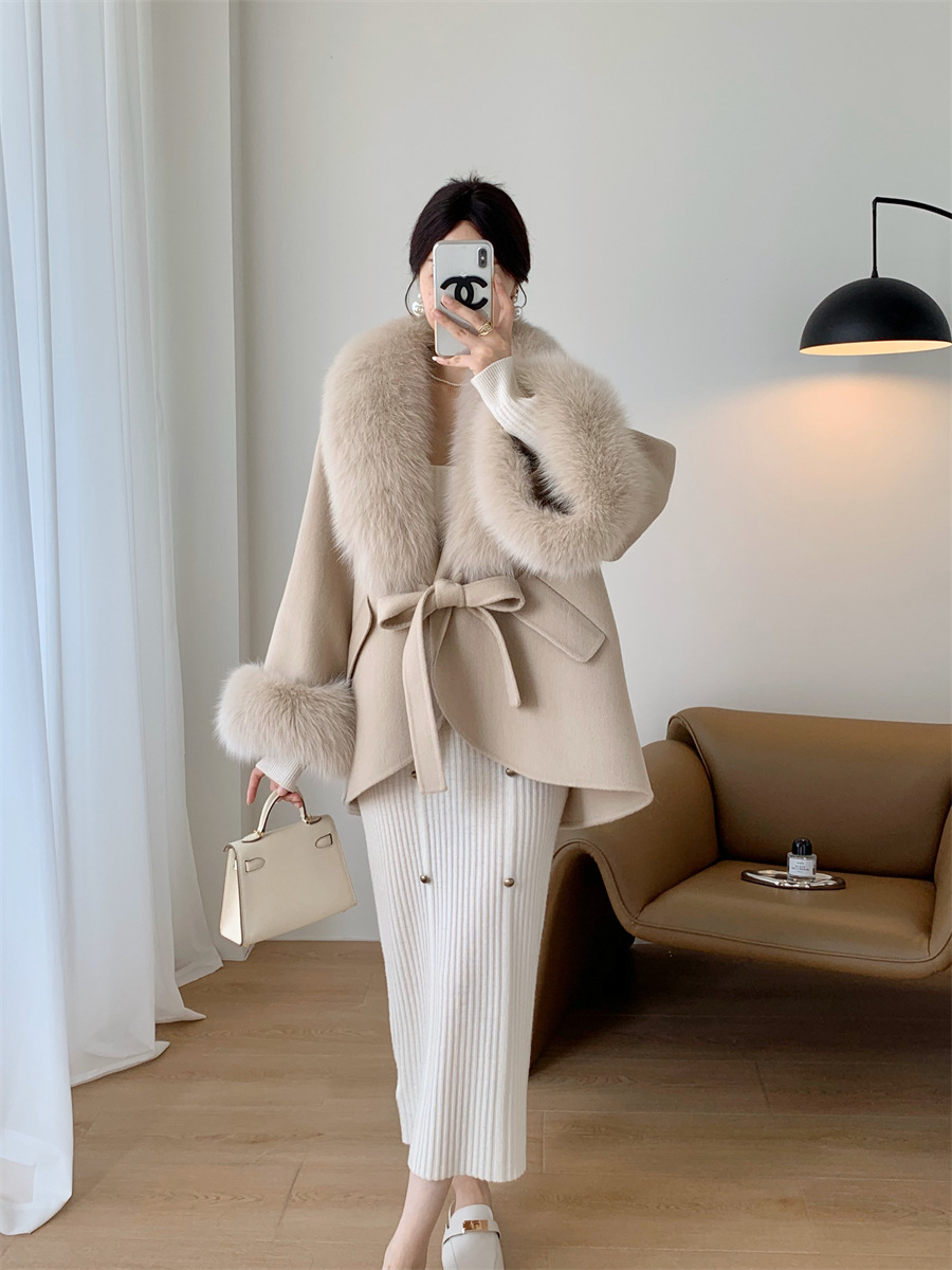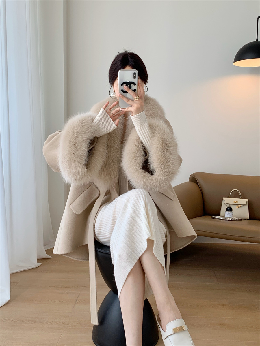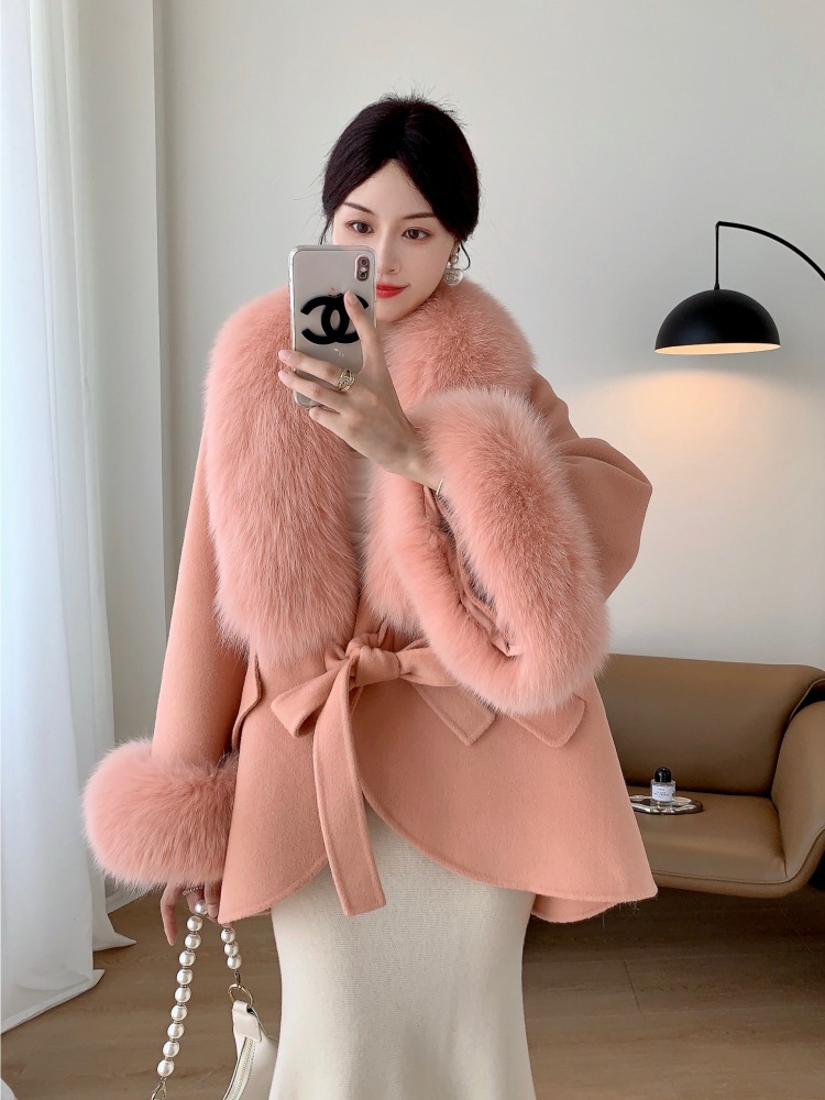 A fur collar fur coat coat