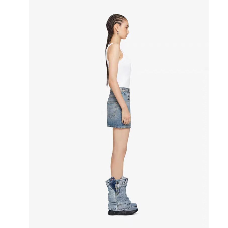 A Round Head Thick Bottom Wedge Heel Black Denim Metal Lock Shark Boots Short Large Size Pants Boots