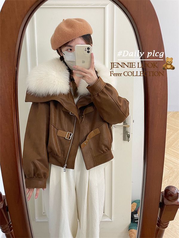 A new imitation fox hair fashion thin down jacket locomotive fur jacket wool coat women