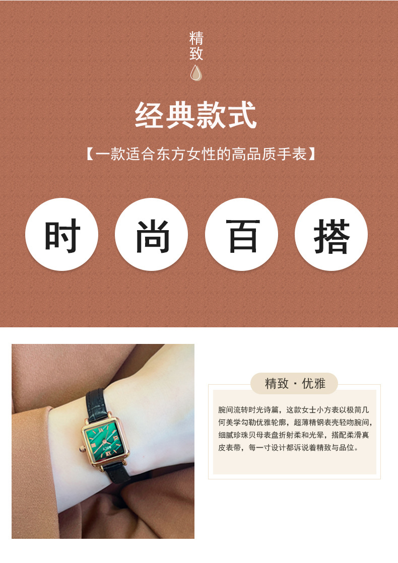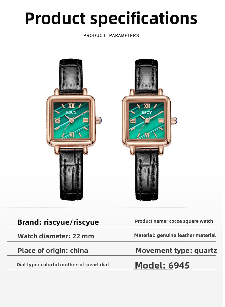 A new retro sugar cube elegant small brown watch RISCYUE luxury classic quartz women's watch