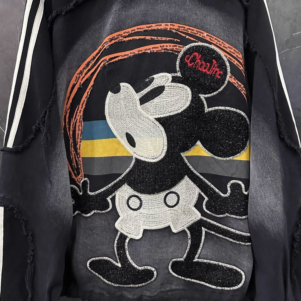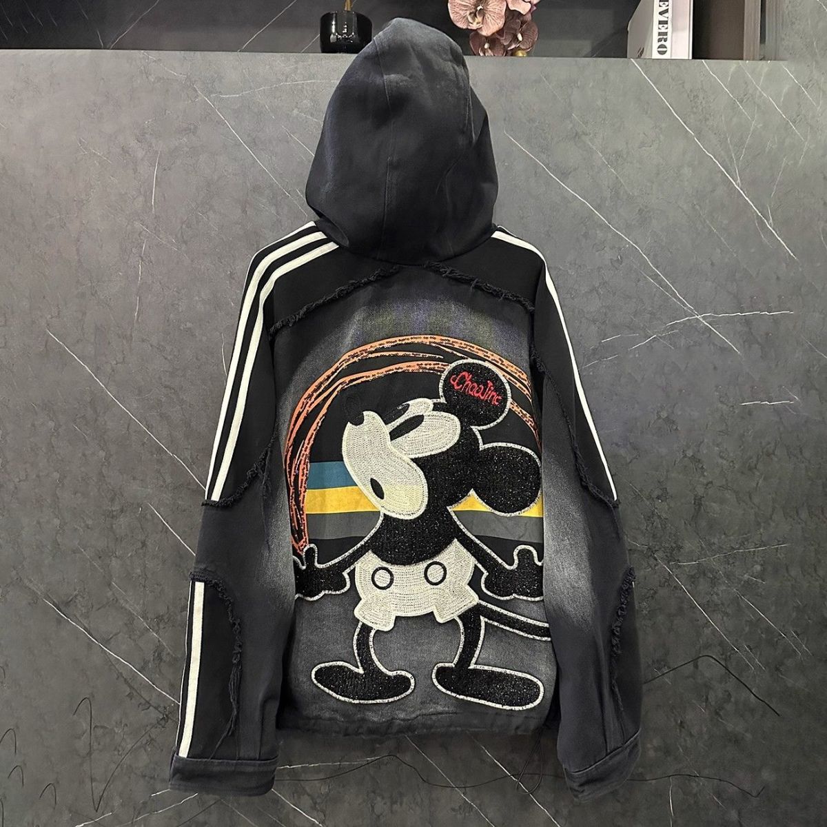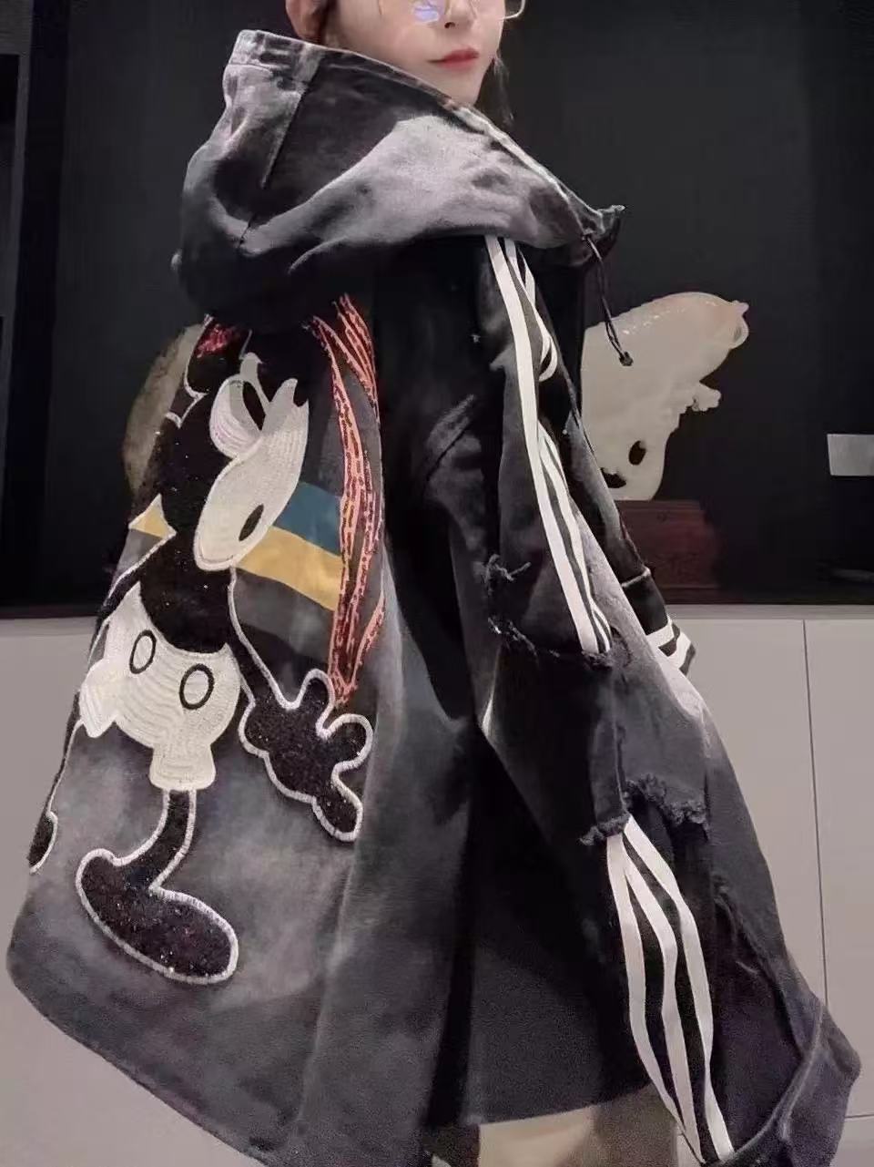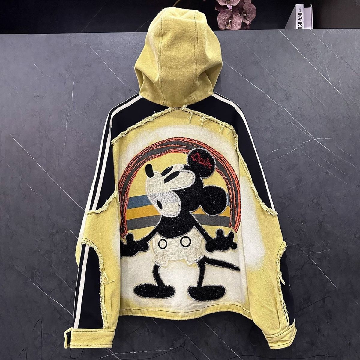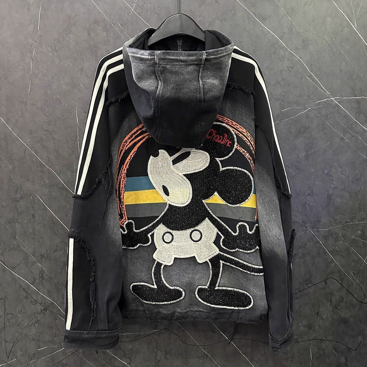 P Spring and Autumn New Heavy Industry Design Sense Cartoon Mickey Hooded Cardigan Sweater