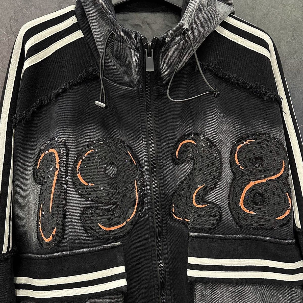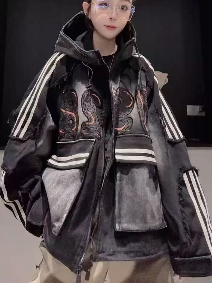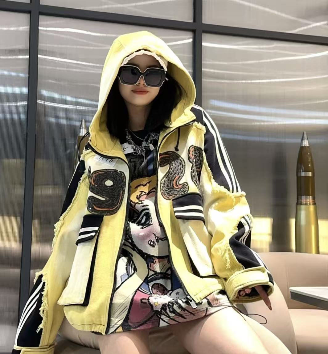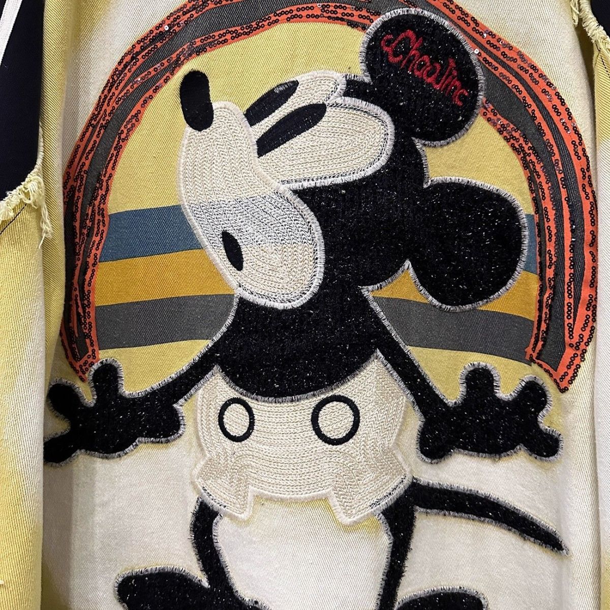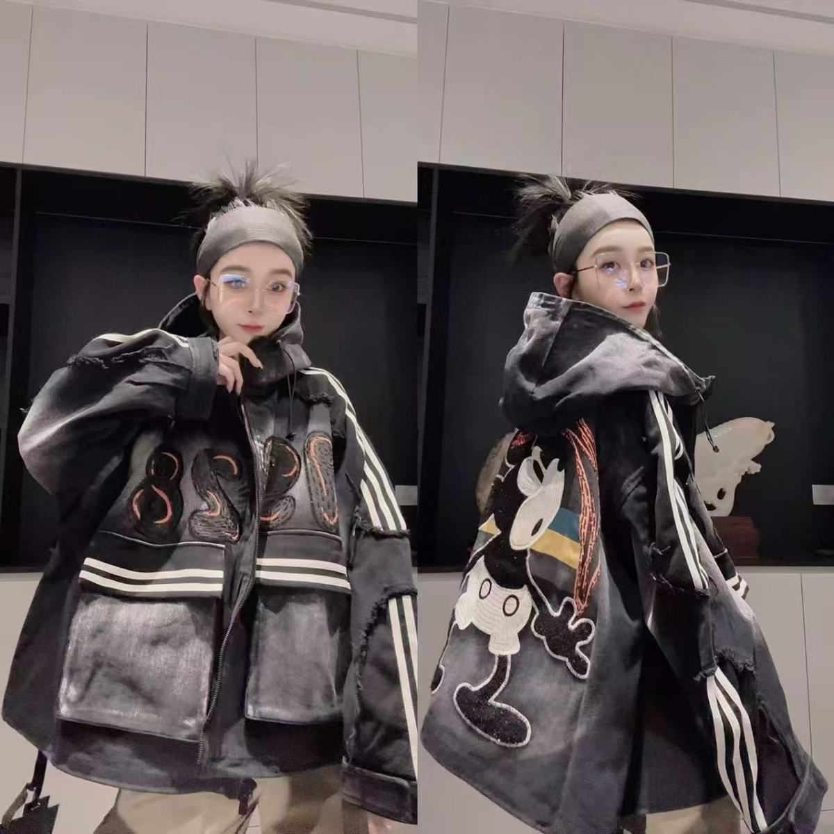 P Spring and Autumn New Heavy Industry Design Sense Cartoon Mickey Hooded Cardigan Sweater
