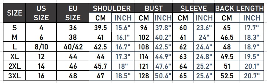 | SIZE/Size | S | M | L | XL | XXL | XXXL |